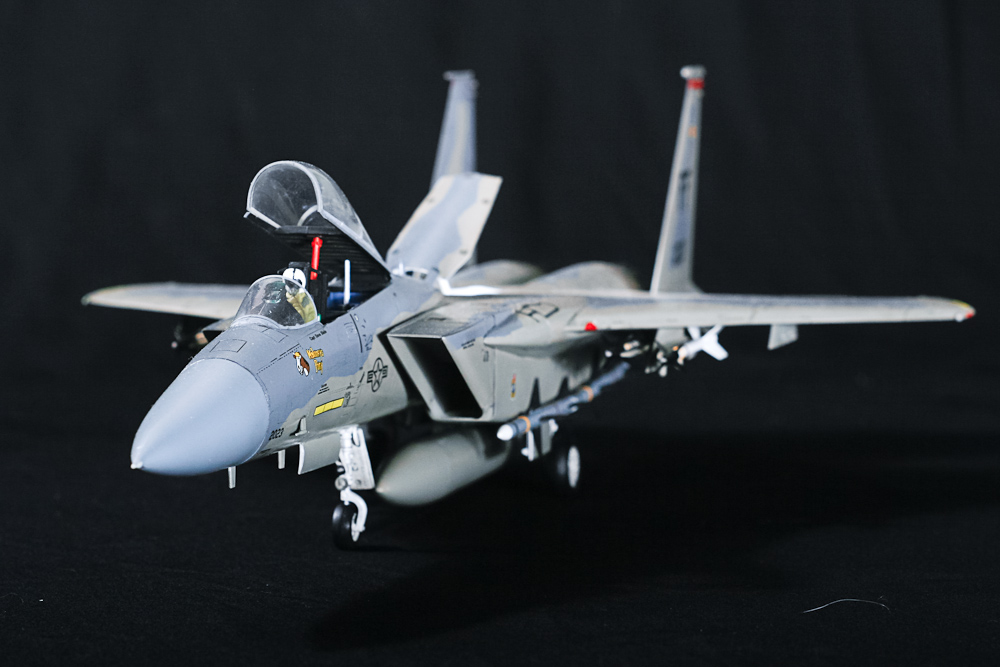 Следил за стройкой, в отпуске модели быстро строятся) Про блеск уже сказали. Не совсем понял наличие наружных пилонов под крылом. Разве они есть на F-15C? Вроде бы они больше для истребителя-бомбардировщика F-15E характерны. Могу ошибаться.
