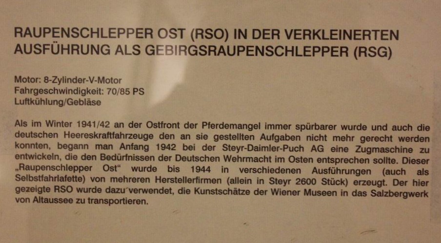 Да это вообще не RSO-OST На фото Gebirgs-Raupenschlepper RSO-RSG. Данная машина разрабатывалась для горно-стрелковых войск, была меньше и уже нормального трактора. До конца войны сделан только прототип, серийно же выпусклись небольшими партиями уже после войнв для Бундесвера.