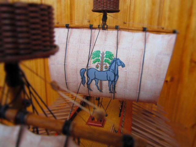 недочетов мелких хватает, наверное все таки к пластику у меня такое пренебрежительное отношение, нет в нём теплоты какой-то, солидности, всегда присутствует ощущение искусственности...Паруса тряпочные решил уже на деревянной модели делать, не было возможности швейную машинку достать... в общем весь свой потенциал буду изливать в деревянную модель