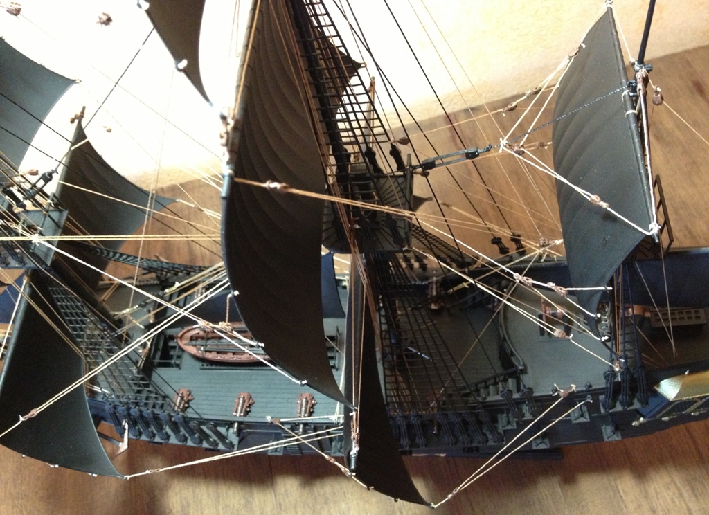 Соглашусь с предыдущими мнениями - аккуратность сборки и ПОКРАСКИ - на высоте. В остальном - "классика жанра": изкоробочный такелаж, т.е. такелажные работы выполнены только наполовину (поэтому и "ниток хватило"