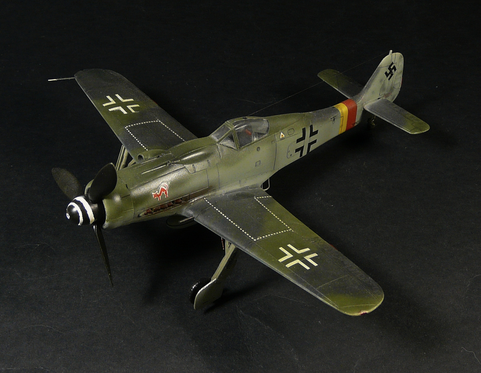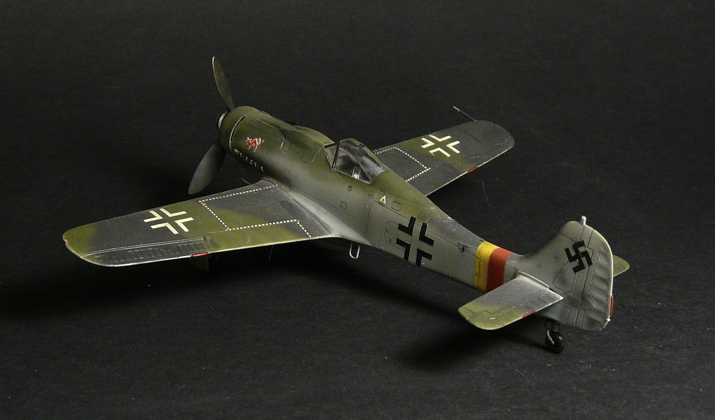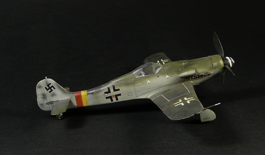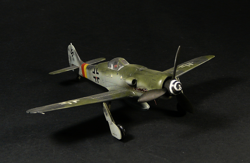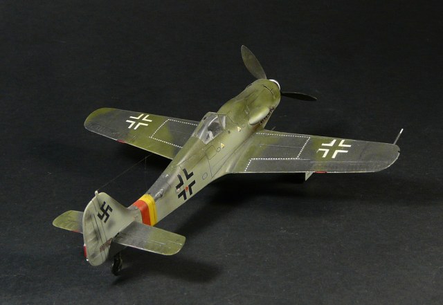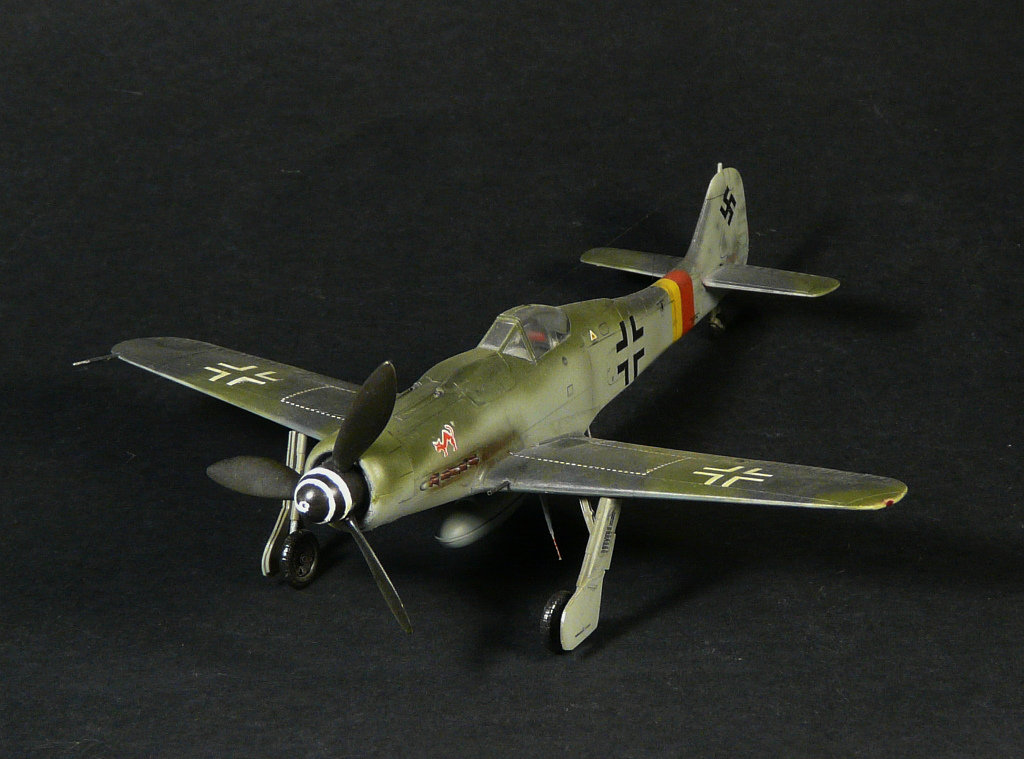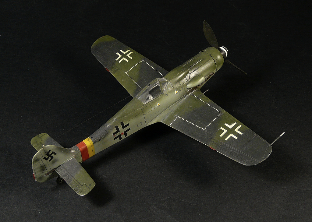 Такое впечатление, что красили "большим факелом" и с большого расстояния, особенно на фюзеляже заметно, размыто как-то. Не похоже на окраску истребителей Люфтваффе.