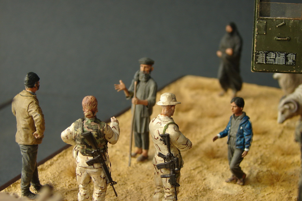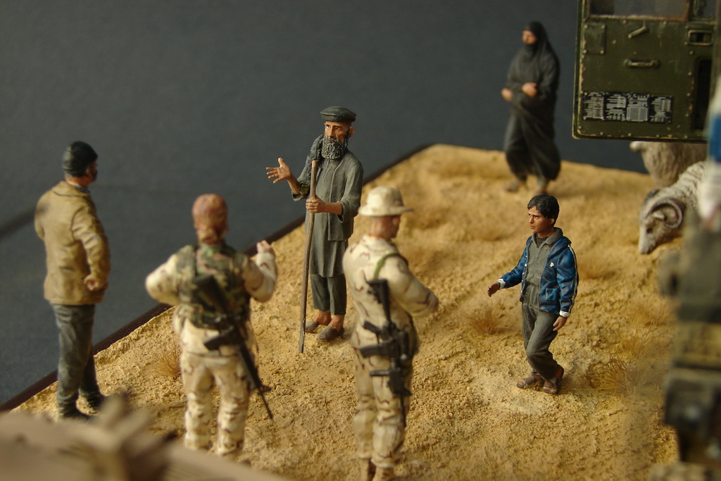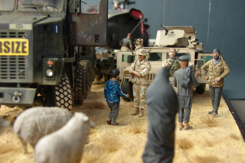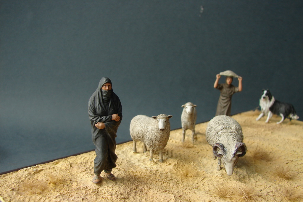 Соединил я наконец то,ранее собранные модели.Сюжет незамысловатый.Фигуры от разных производителей.Красилось красками Валехо и Андреа.