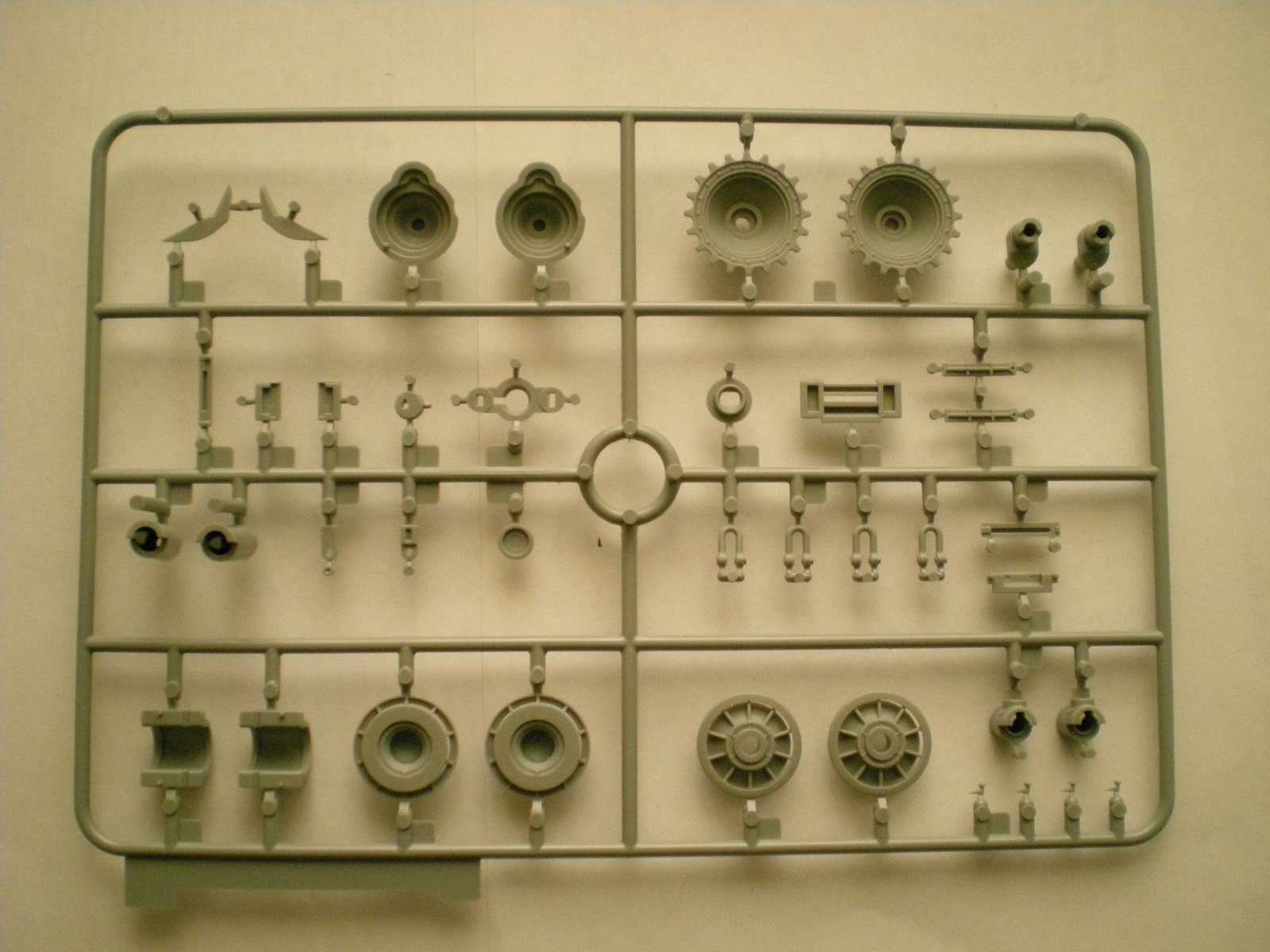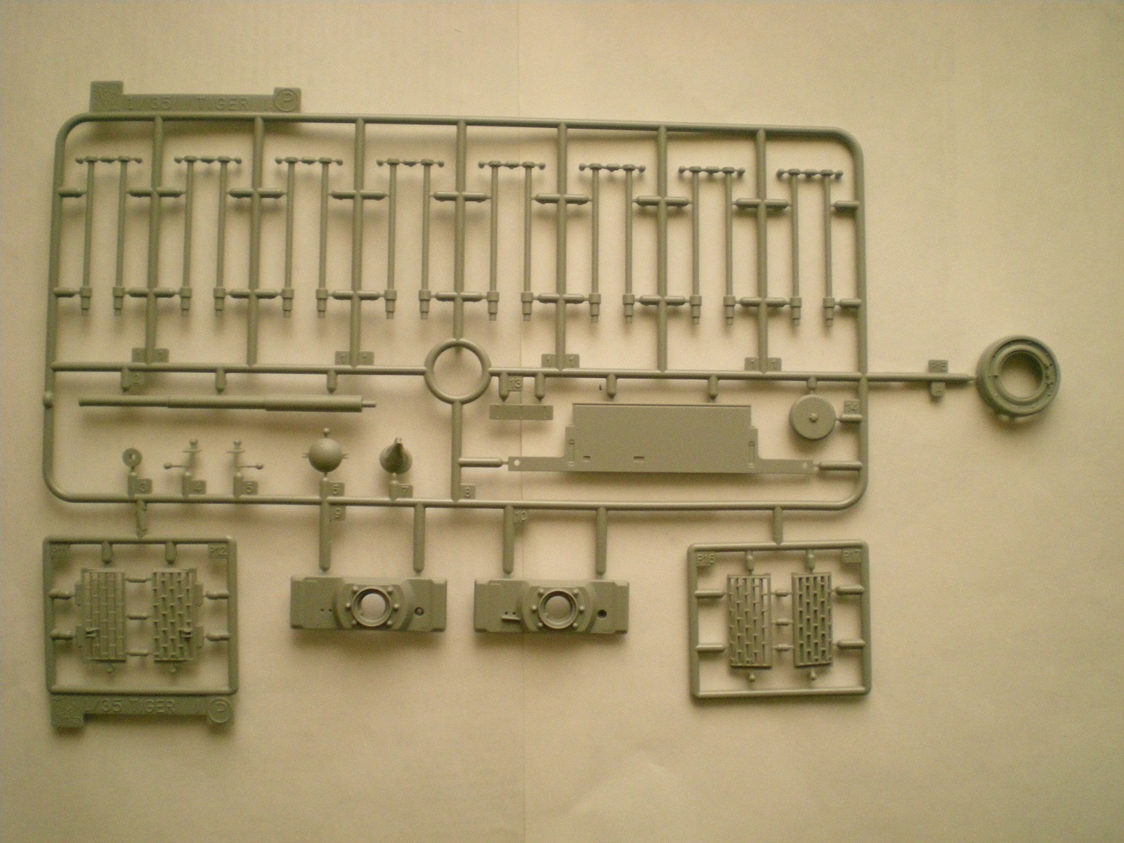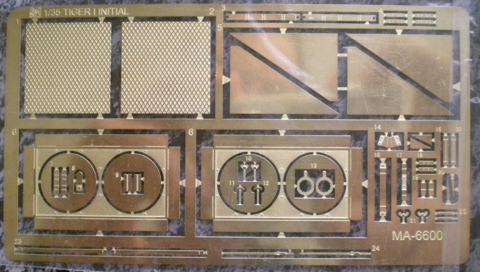 В коробке лежит 16 литников серого пластика, корпус танка, 3 платы фототравления, 3 виниловых гусеницы, 2 троса, декали, схемы окраски и инструкция. Качество на высочайшем уровне. Инструкция большая ,но понятная.