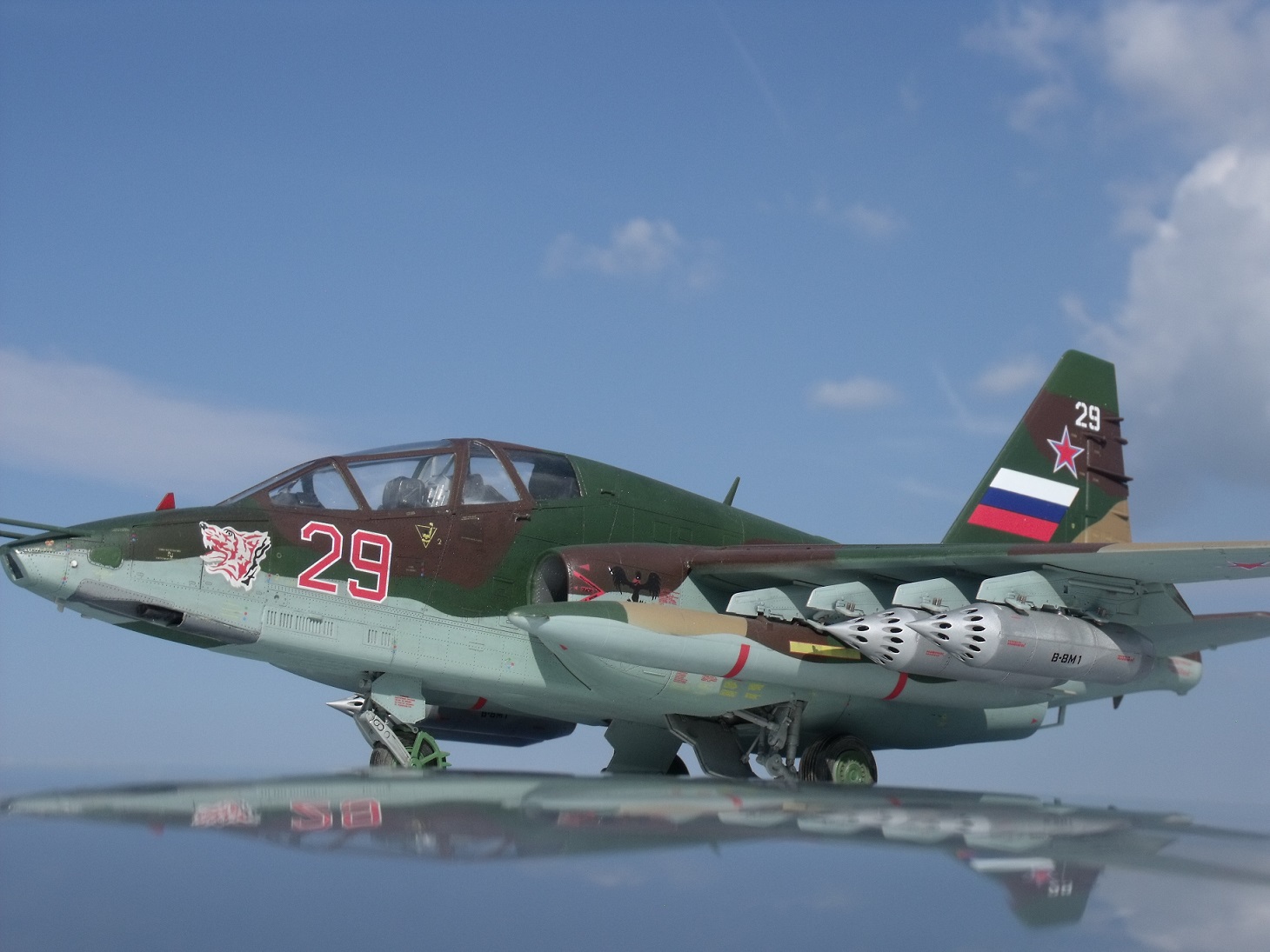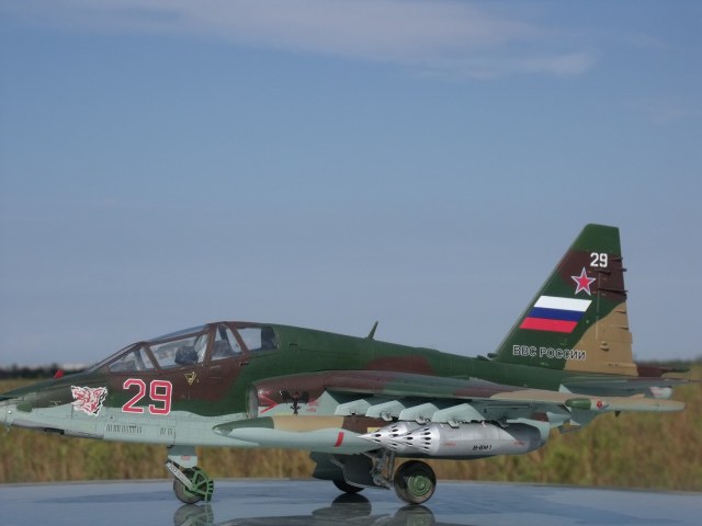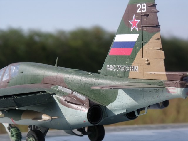 Хорошая модель, но по матчасти много ошибок. Данная машина - Су-25УБК, соответственно: