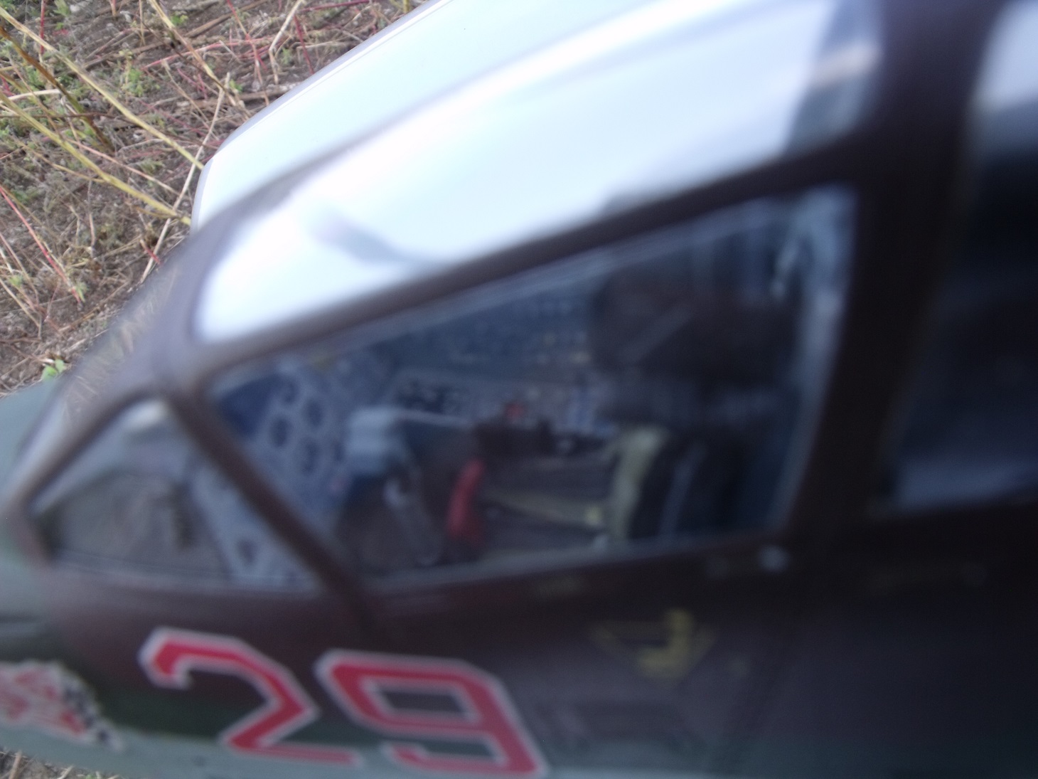 На самолете установлена ОЧФ 2-й кабины с перископом и шторка слепого полета в 1-й кабине. У вас же бесперископный фонарь с закрашенным верхним стеклом и нет шторки.