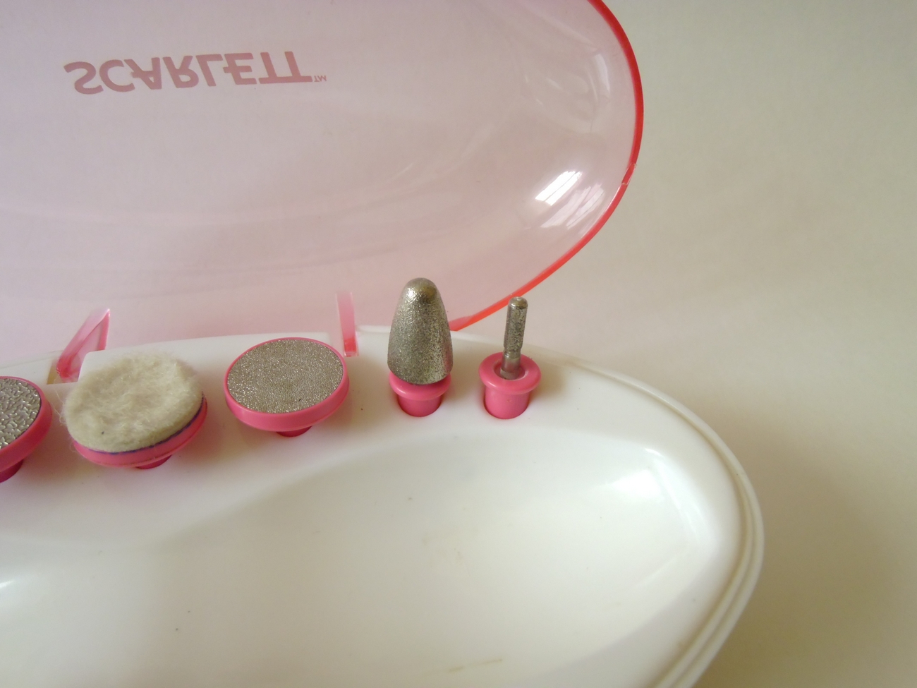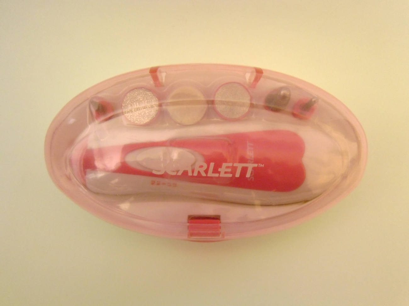 Доброго времени суток господа единомышленники!))) Решил представить вам набор(прямое назначение) для маникюра и педикюра.Достался он мне от дочери.Ей был подарен,ну а она в силу того,что им не пользуется,спрезентовала мне.)))Описывать его наверное смысла нет,на фото всё прекрасно видно.Лично мне он весьма нравится,обтачивает и шлифует пластик просто на ура.Работает в две стороны вращения и две скорости,первая конечно не очень,ну а вторая просто то-что нужно.Работает почти бесшумно.Насадки меняются очень просто и быстро.Потянул и вынул,ну и в обратном порядке вставил.Размер коробки примерно 16Х8.5см,длина самого агрегата 13,ширина 4см.Благодаря своей анатомической форме,прекрасно лежит в руке.И наконец САМОЕ ГЛАВНОЕ: ЦЕНА! Стоит примерно из рассчёта 13-14 долларов.конечно это не бормашинка,НО!,с его появлением в моём арсенале,лично у меня желание в покупке бормашинки практически пропало. Ну вот как-то так. Думаю,что эта инфа кому нибудь пригодится.Благодарю за внимание.