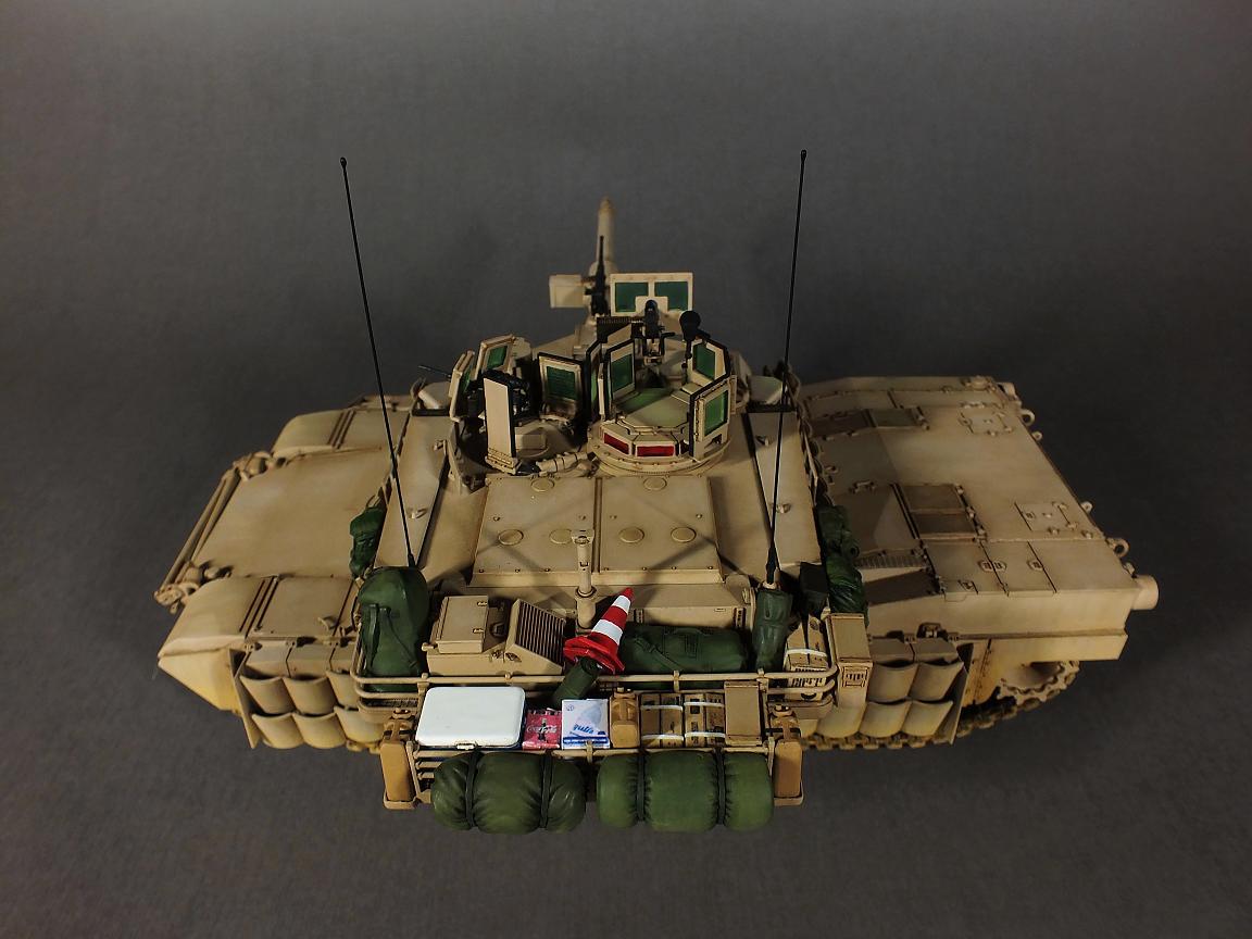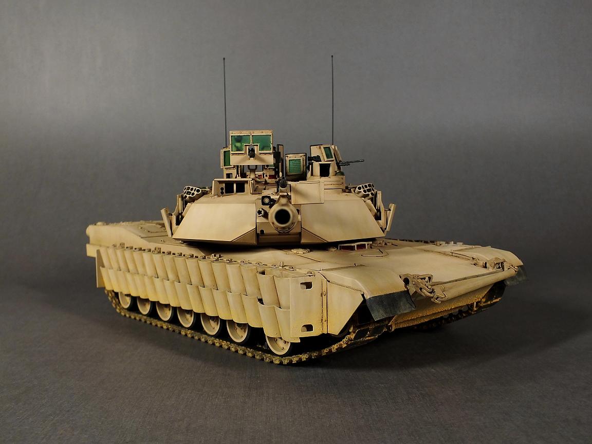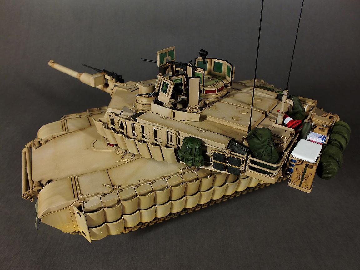 Модель изкоробочная с минимальными доработками и с использованием набора фототравления Eduard (решётки для M1A1) и Legend ("барахло" в забашенных корзинах).