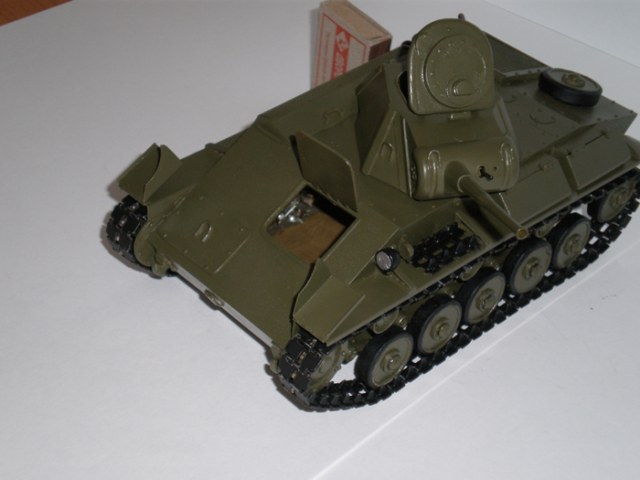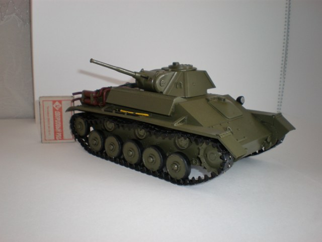 Модель легкого танка Т-70 М выполнена в масштабе 1:22 из металла, подвижная ходовая часть, независимая подвеска опорных катков, бандаж катков резиновый, люки подвижны.
