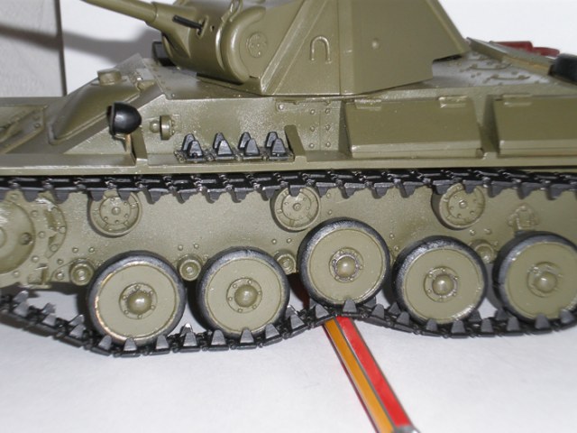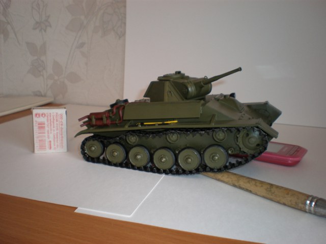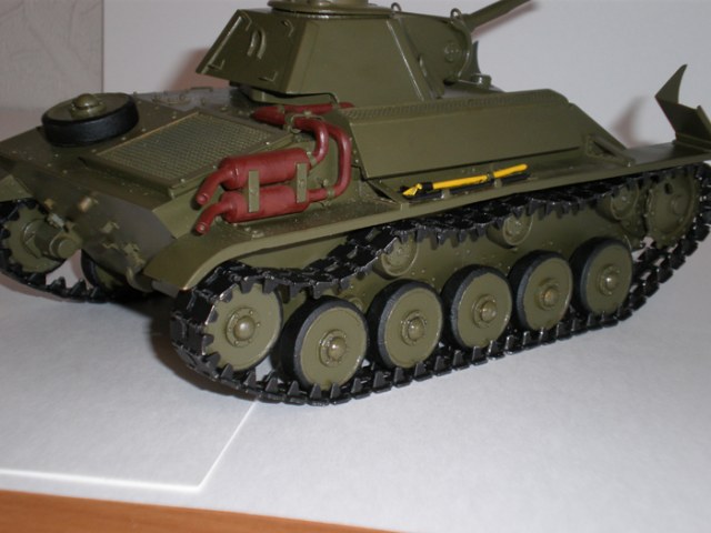 Самодел из металла, конечно, вызывает огромное увжение и восхищение, но для масштабной модели этого мало. В плане соответствия матчасти и проработки мелочей очень много несоответствий. К примеру, те же гусеницы, выхлопные трубы, пулемет и т.д. Фару в таком масштабе, думаю, можно было гораздо изящней сделать. Покраска абсолютно игрушечная, без обид. Поэтому для Галереи работа явно слабая.