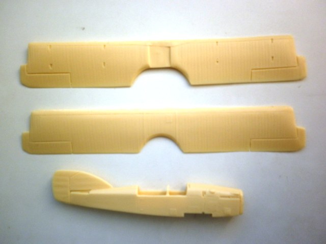 Детали из смолы. Качество литья неплохое. Присутствует облой на мелочёвке и дефект формы на верхнем крыле ( передняя окантовка ушла в сторону).