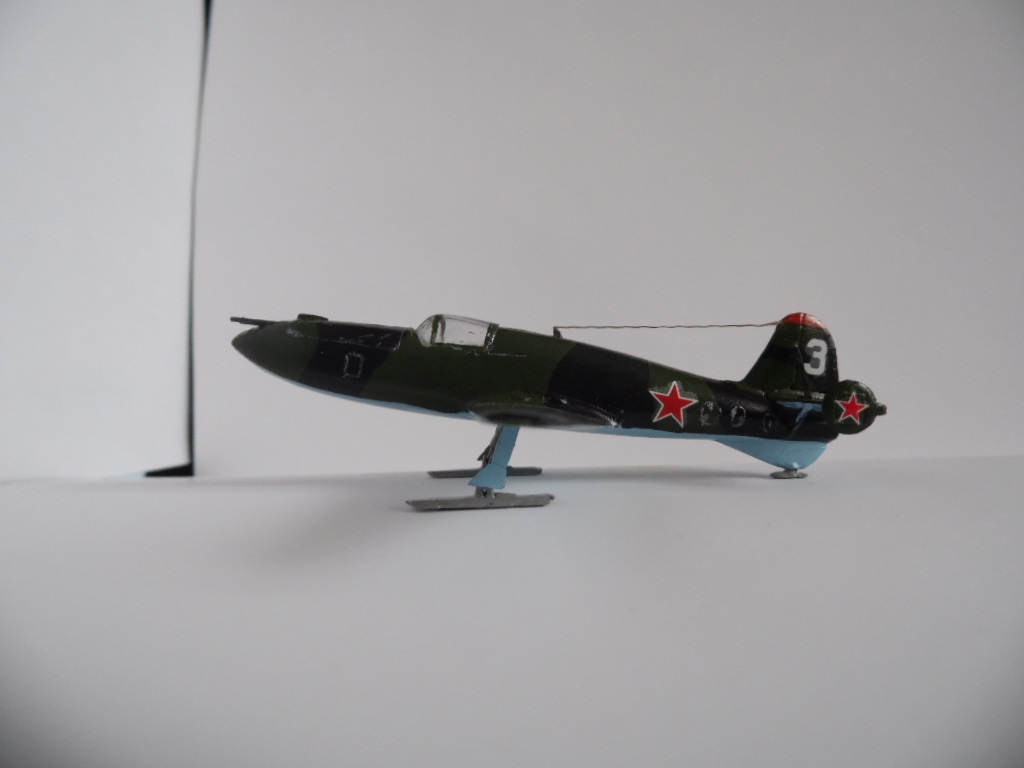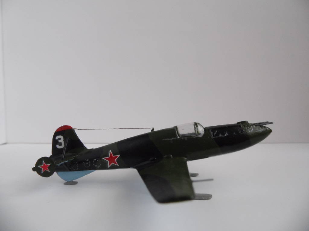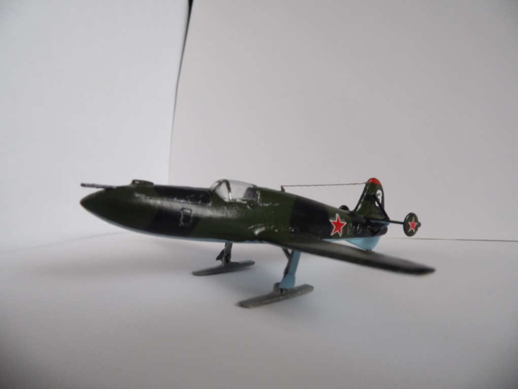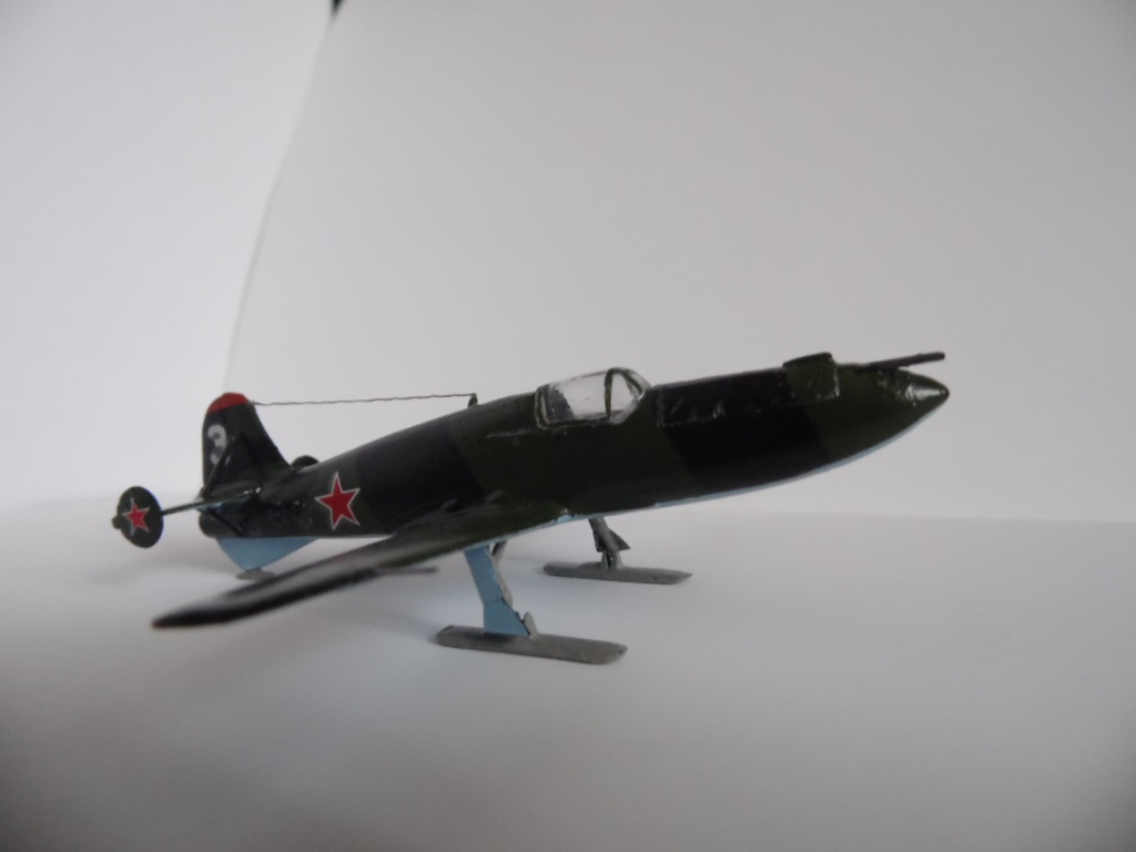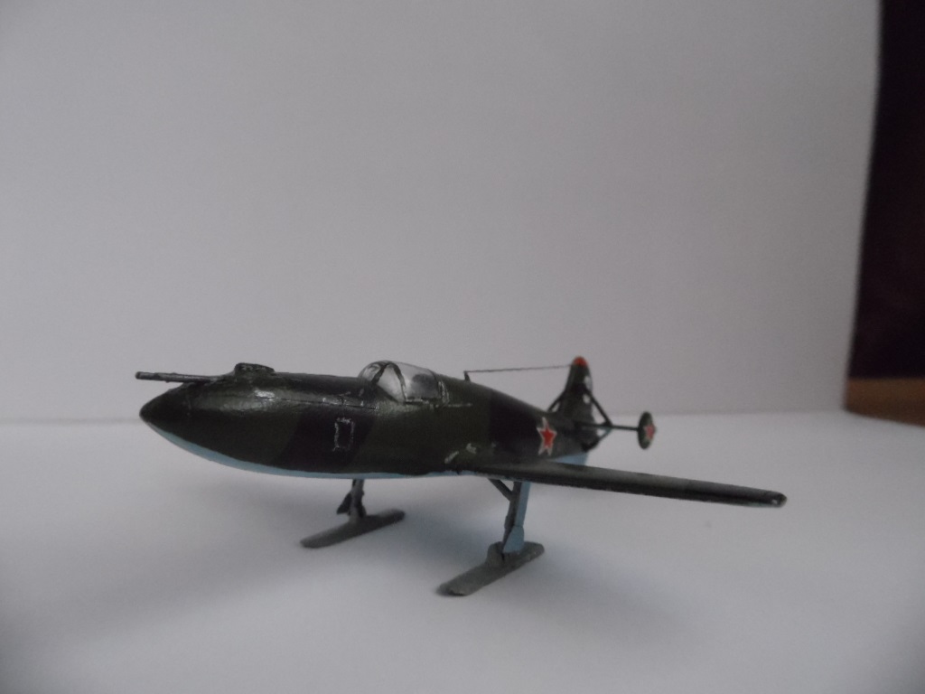 Модель - бывший ВЭС. Собирал когда-то, мне достался вполне приличный пластик, видимо, потом запороли форму. В принципе сборка неплохая, окраска тоже прилична как для кисти. Но вот сколы, на мой взгляд слишком грубы, да вообще на опытном самолете смотрятся странно.