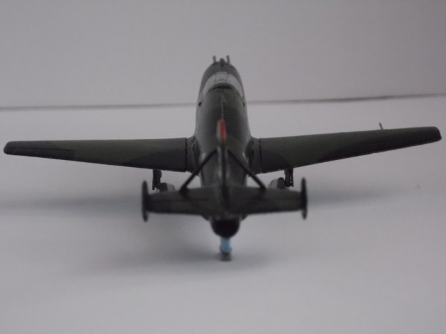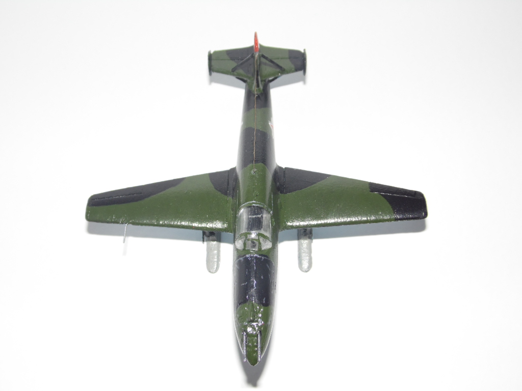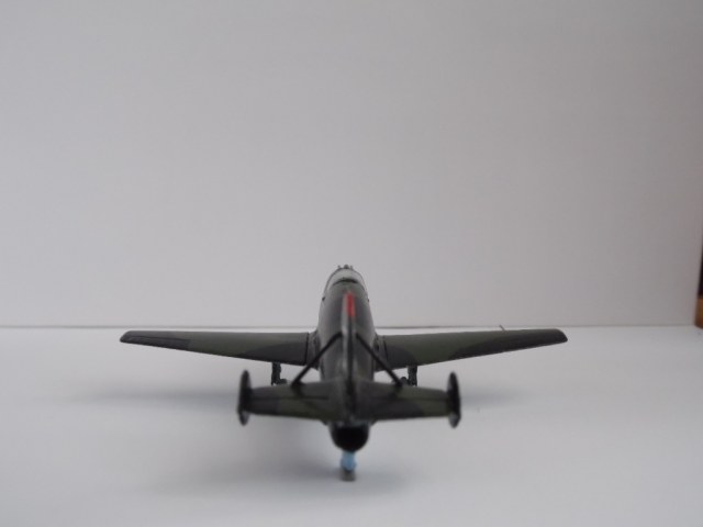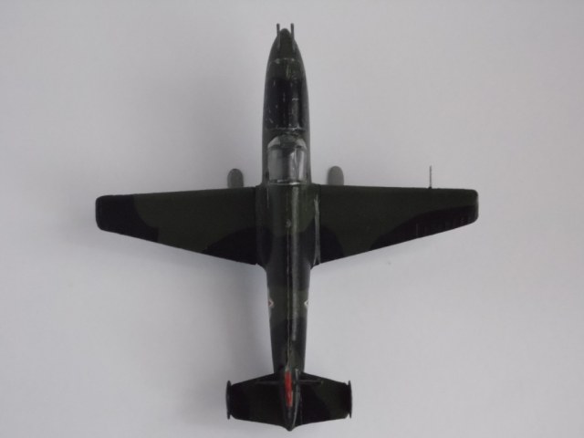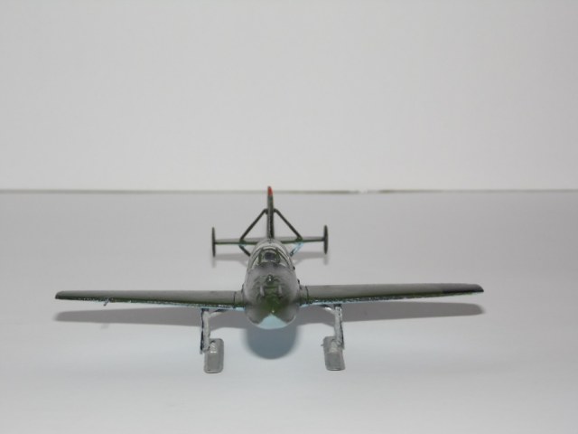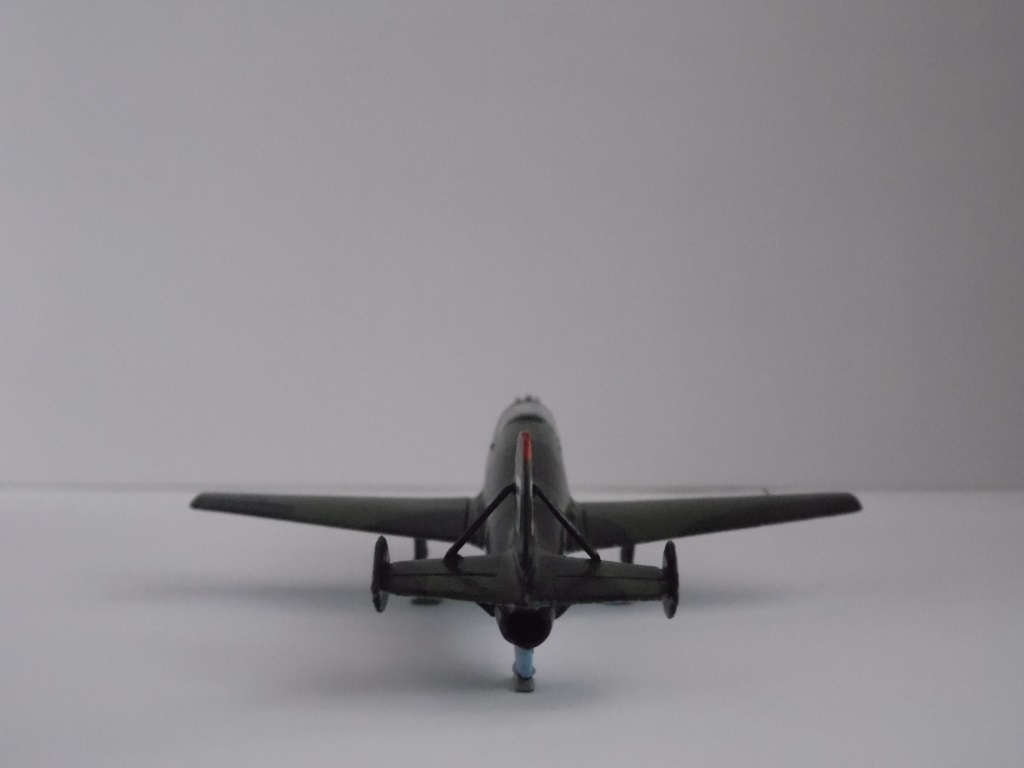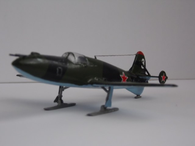 Модель - бывший ВЭС. Собирал когда-то, мне достался вполне приличный пластик, видимо, потом запороли форму. В принципе сборка неплохая, окраска тоже прилична как для кисти. Но вот сколы, на мой взгляд слишком грубы, да вообще на опытном самолете смотрятся странно.