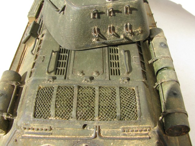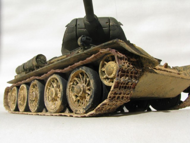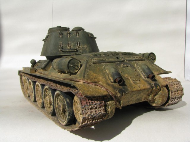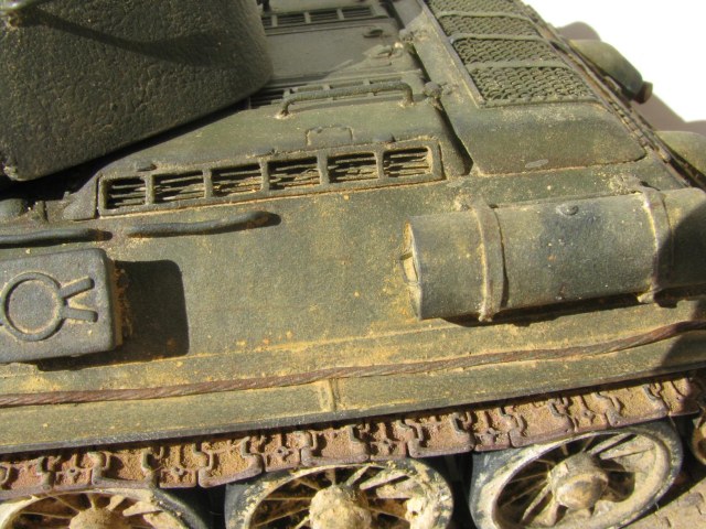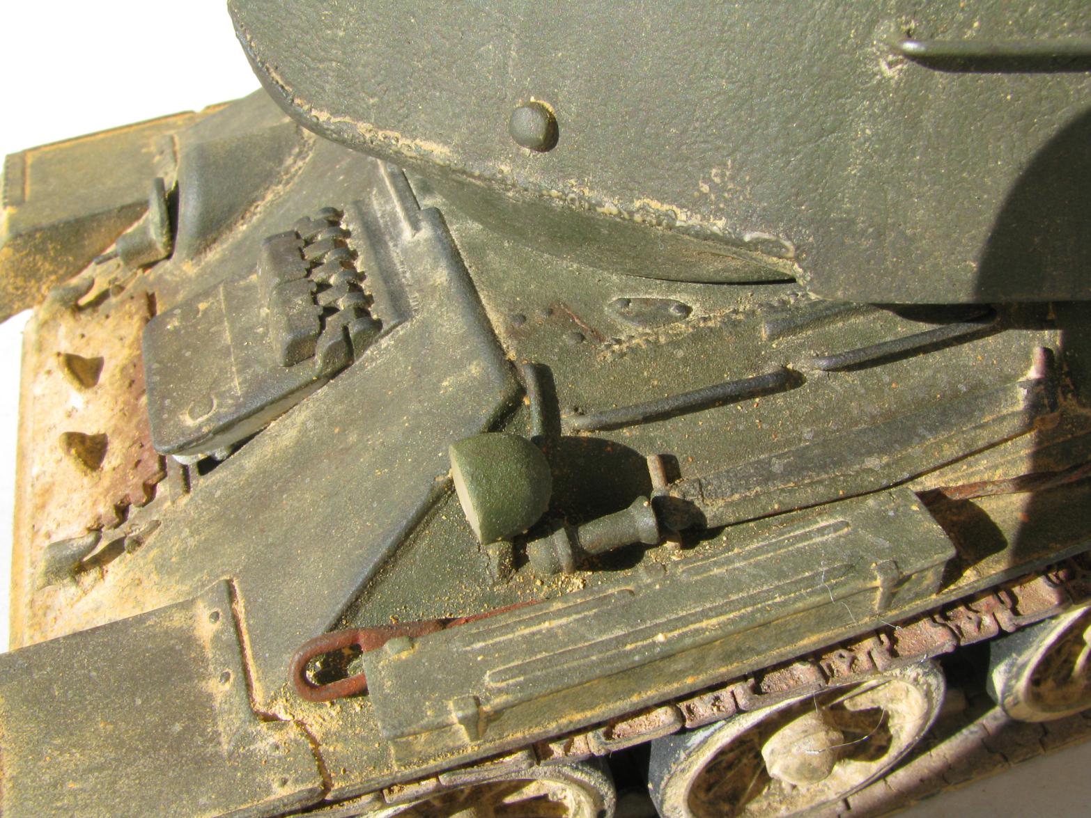 . Где-то высветлить, где-то притенить. Сколов чуть-чуть добавить, потертостей, потеков дождя, грязи... И загрязнение очень неважное, неестественное,просто замазана модель пигментами и все.Больше внимания обращайте как именно лежит грязь на технике в реальности, куда ее попадает больше, куда меньше, какие оттенки она имеет (мокрая грязь всегда темнее влажной, влажная - сухой), где она начинает подсыхать в первую очередь, где вообще не сохнет... И все это пытайтесь имитировать на своей модели, благо материалов для этого сейчас предостаточно, равно как и обучающей информации.