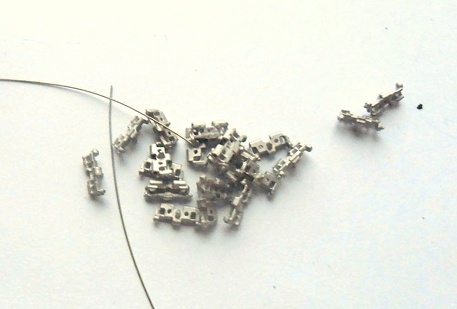 Гусеницы выполнены из белого металла, подобного продукции "Фриула" и "SAМ". Рисунок траков довольно четкий, мне показалось, что даже лучше, чем у "Фриула" (у них уже, наверное формы начали изнашиваться). В наборе находятся две уже собранные гусеничные ленты и некоторое количество траков россыпью с металлическими проволочками. В принципе, "Сектор35" предлагает наборы как собранные в ленты, так и с траками россыпью. При предварительном сравнении никаких отличий в размерах от траков других производителей не выявил.
