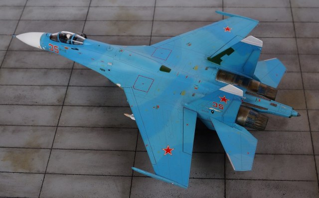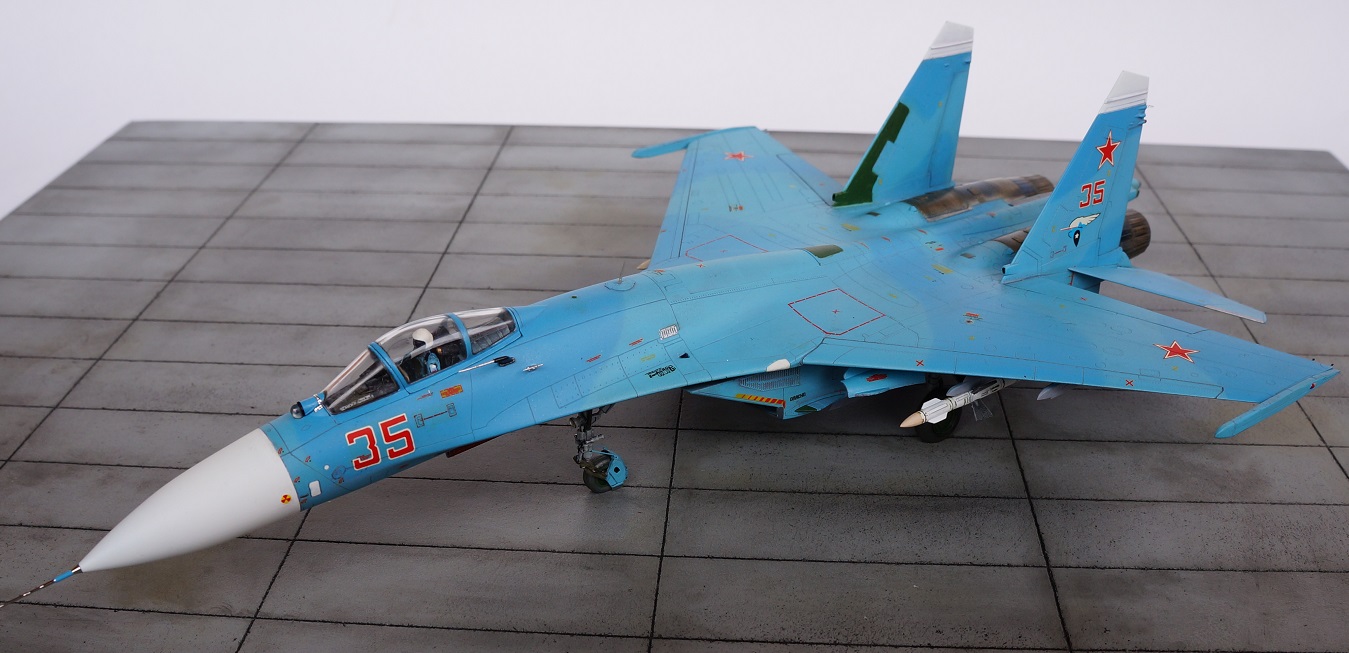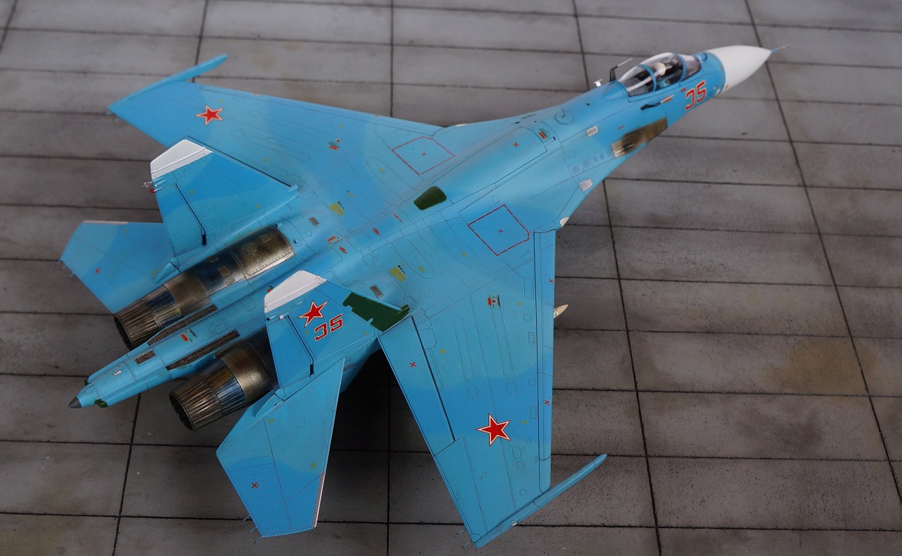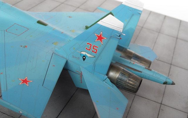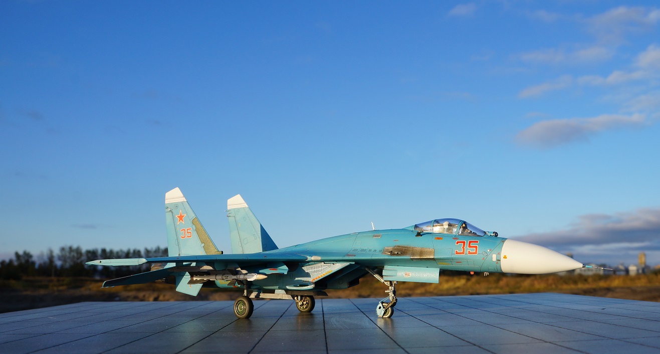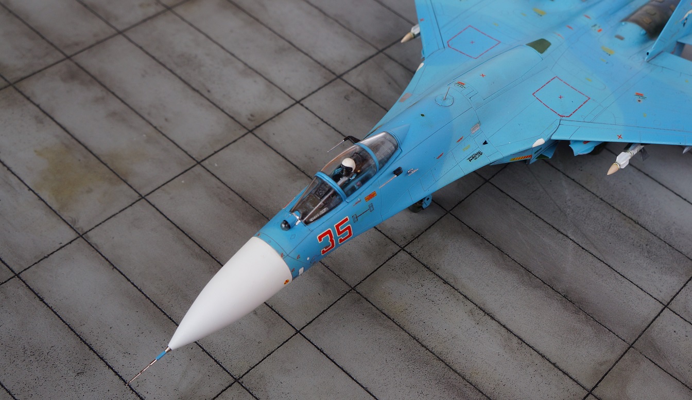 Договорили, переходим на ТЫ))) На Су-27 10 точек подвески, а не 12, а ты сместил точки подвески на 11-ю и 12-ю (которые производителем модели подготовленные как универсальное днище и под Су-27, УБ, 30,...), а по радиопрозрачным панелям - потерянные еще по одной белого цвета на булях (наплывах крыла). Фото ты привел в пример уже не простых Су-27, а модернизированных. Ну ладно, не будем вдаваться с подробности и дебри матчясти и указывать на все отличия. Если "так захотелось сделать" то тут уже не попрешь - хозяин - барин