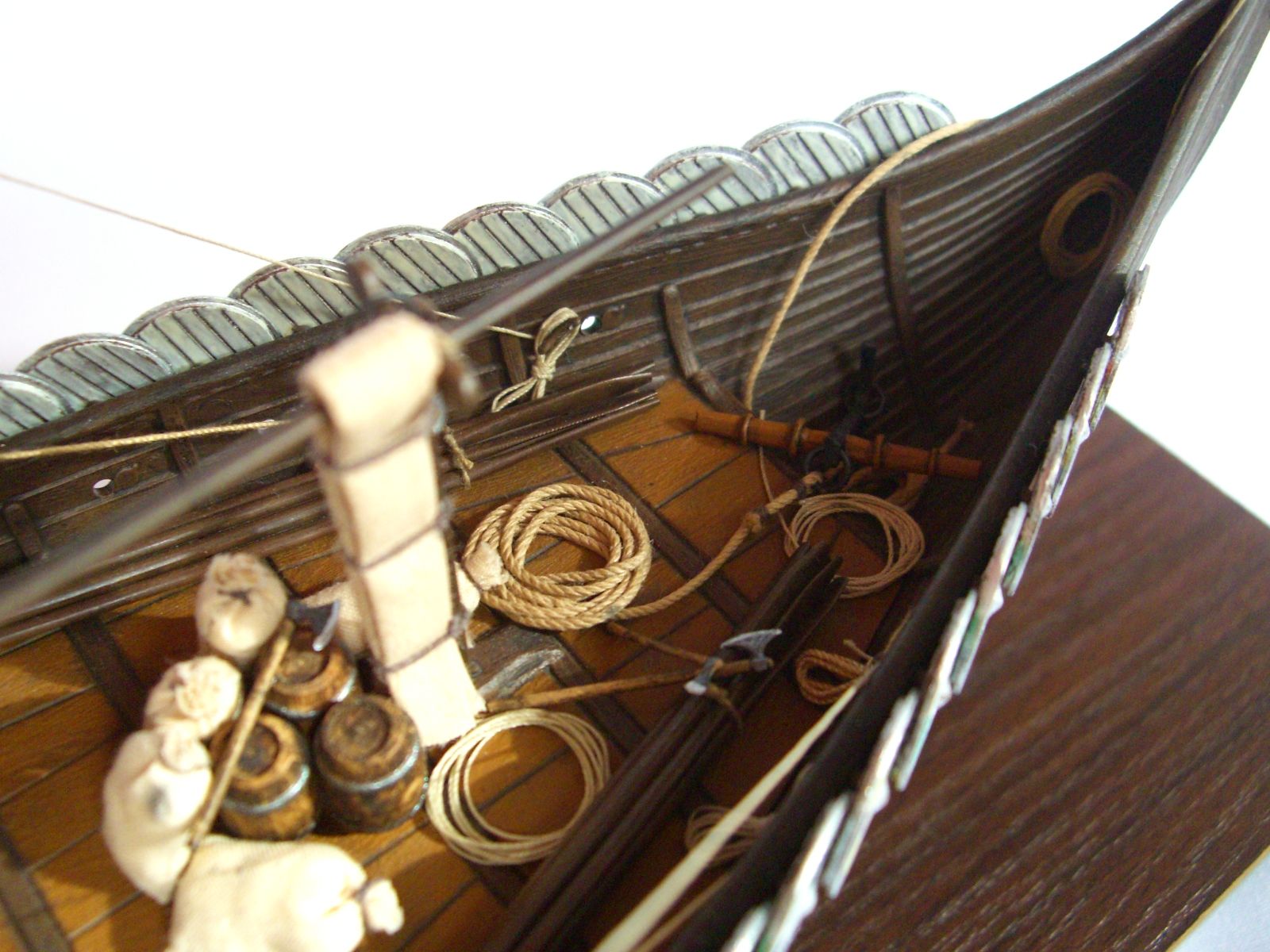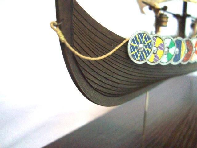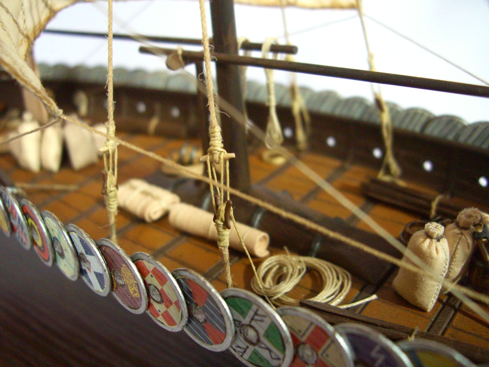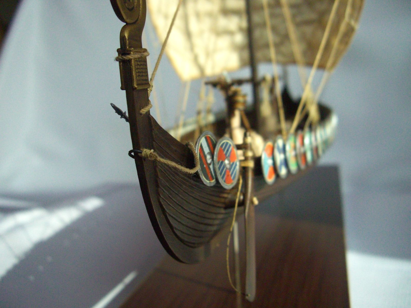 в общем то понравился корабль, но вот парус - просто лоскутное одеяло, т.к. прострочка слишком грубая. В этом масштабе, получается, что парус прошивался канатами. Рисунок на парусе - это вообще шедевр, такого не могло быть, а если даже и могло, то таких картин викинги точно рисовать не могли. Первое, на что я посмотрел - это парус - он убил всю серьезность восприятия, но , в общем-то, в галерею можно