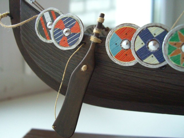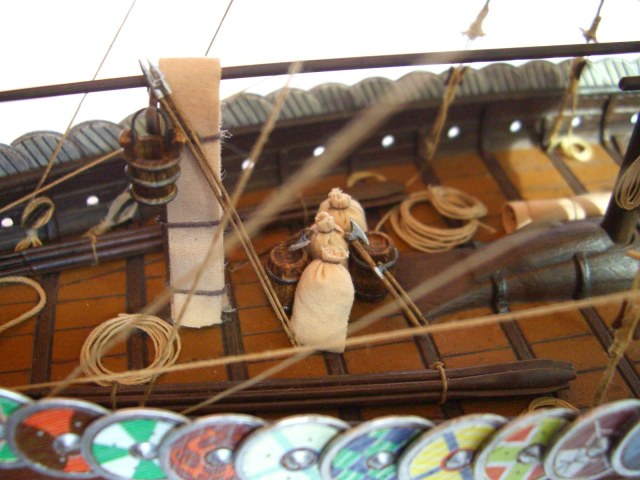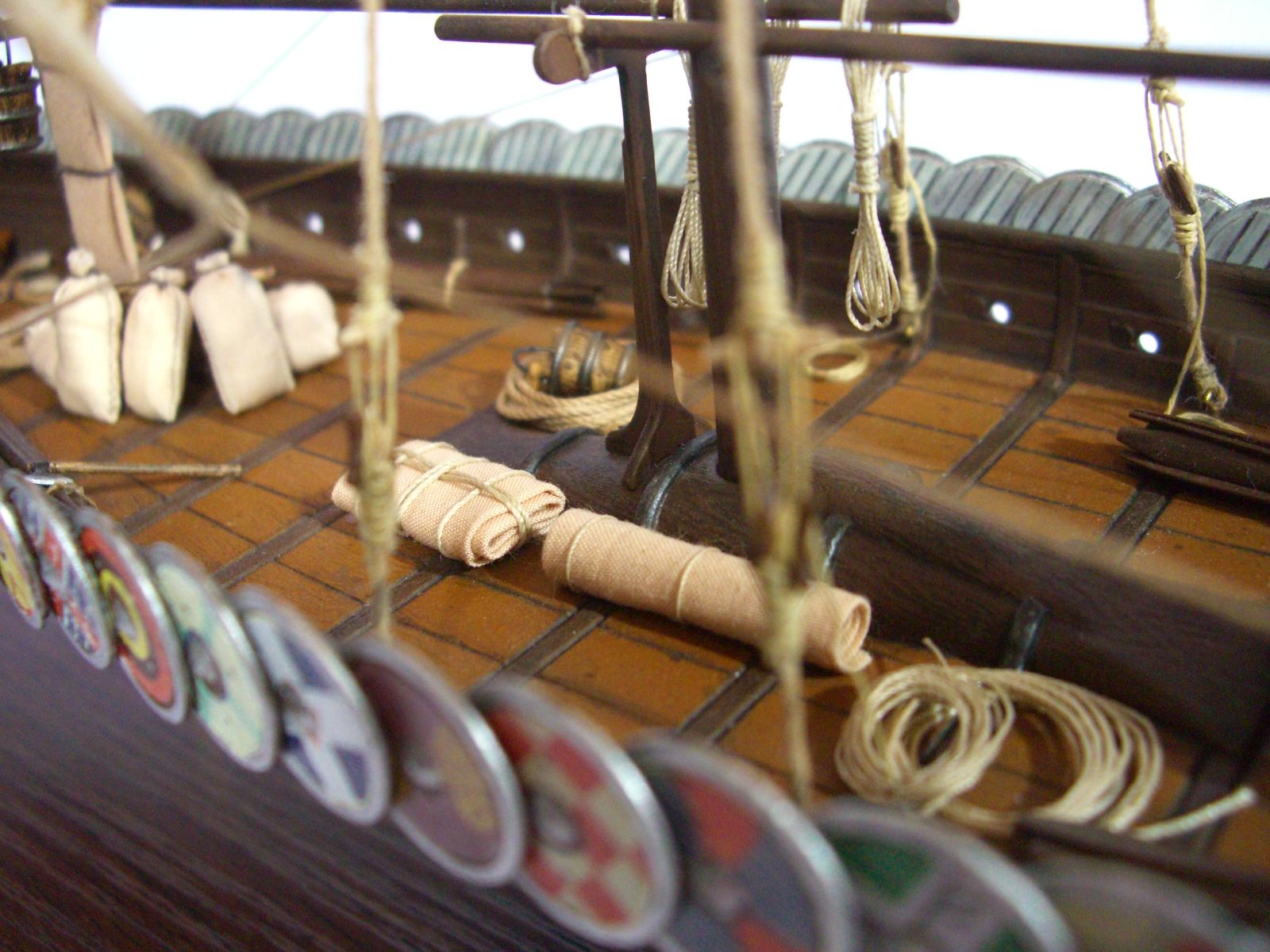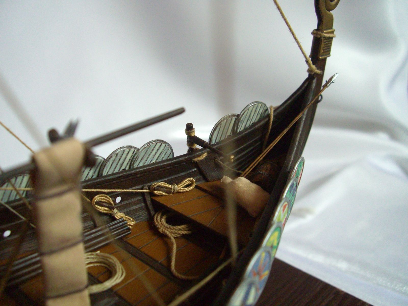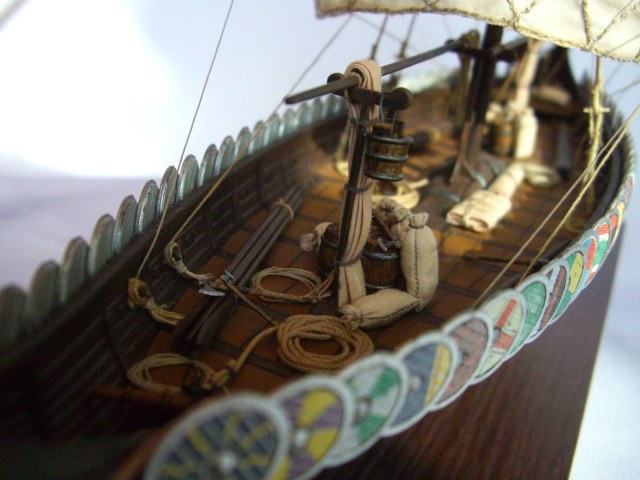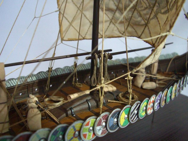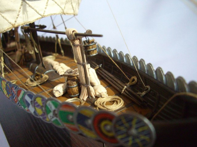 Очень красиво. И под дерево окраска удалась, и все прочие детали здорово получились.... А что на счёт рисунка на парусе.... а может они художника византийца в плен взяли.... вот и заставили его показать, на что он способен, напоив конечно же предварительно и припугнув (а у них наверное рожи тогда были - не приведи господь где встретить), вот он и психонул со страха и выдал шедевр.... Шутка, юмор.... но при желании можно и такую легенду развить....