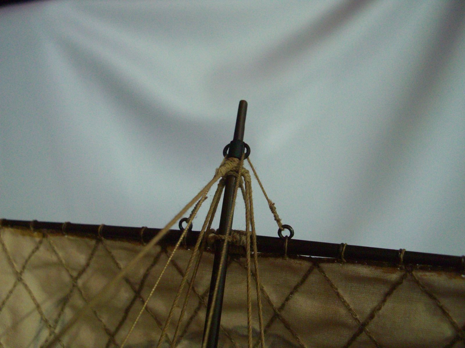 Пояснил не до конца,извинясь.Это те элементы бегучего такелажа,которые позже вылились в нок-гордени,бык-гордени ,гитовы и прочие снасти непосредственно паруса.Надо было их показать более реалистично.