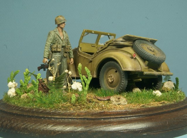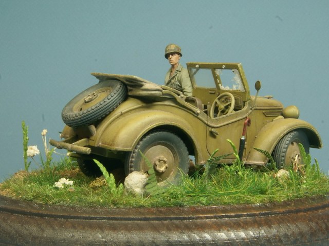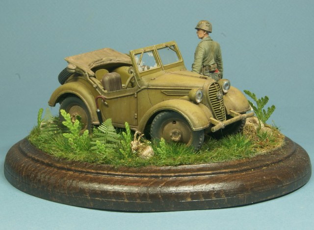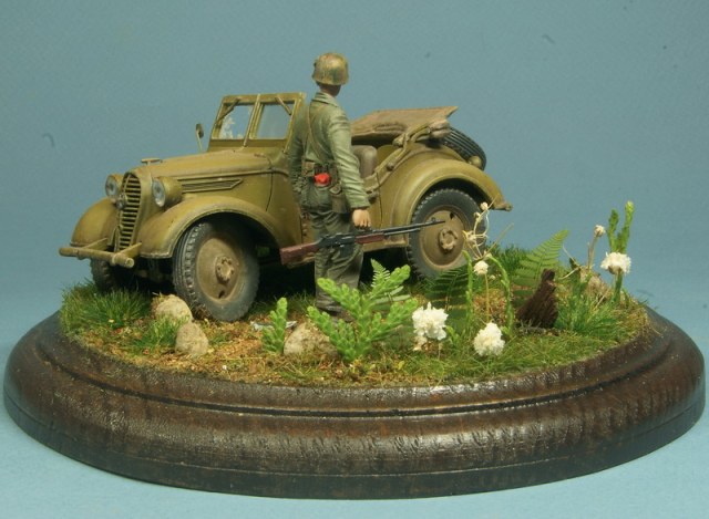 В главных ролях IJA Small personal car Kurogane - модель от PitRoad, проста до безобразия в деталировке но при этом хороша по качеству литья и проста в сборке. Фигурка бойца от Evolution - качество продукции этой фирмы в представлении не нуждается.
