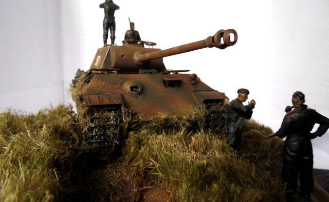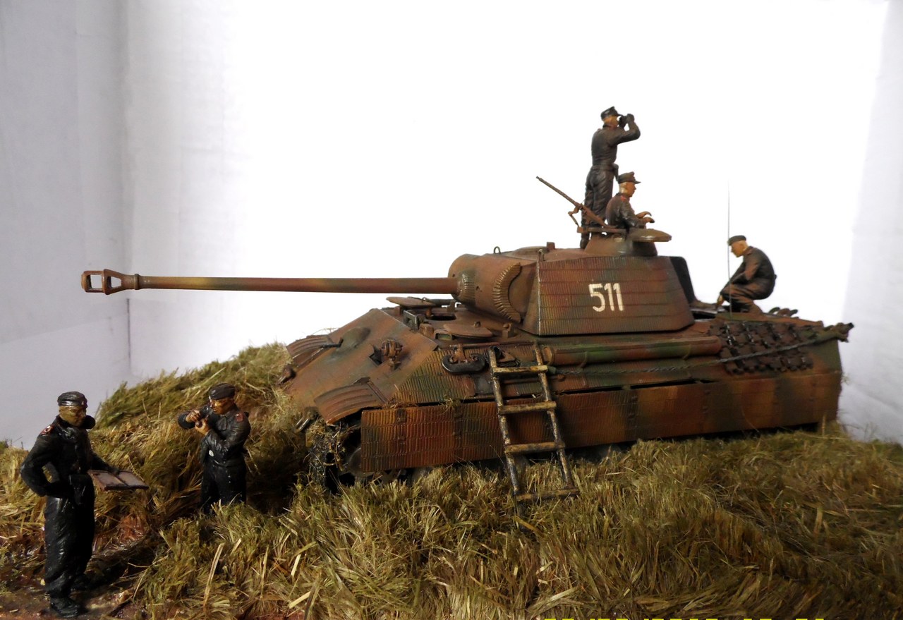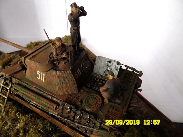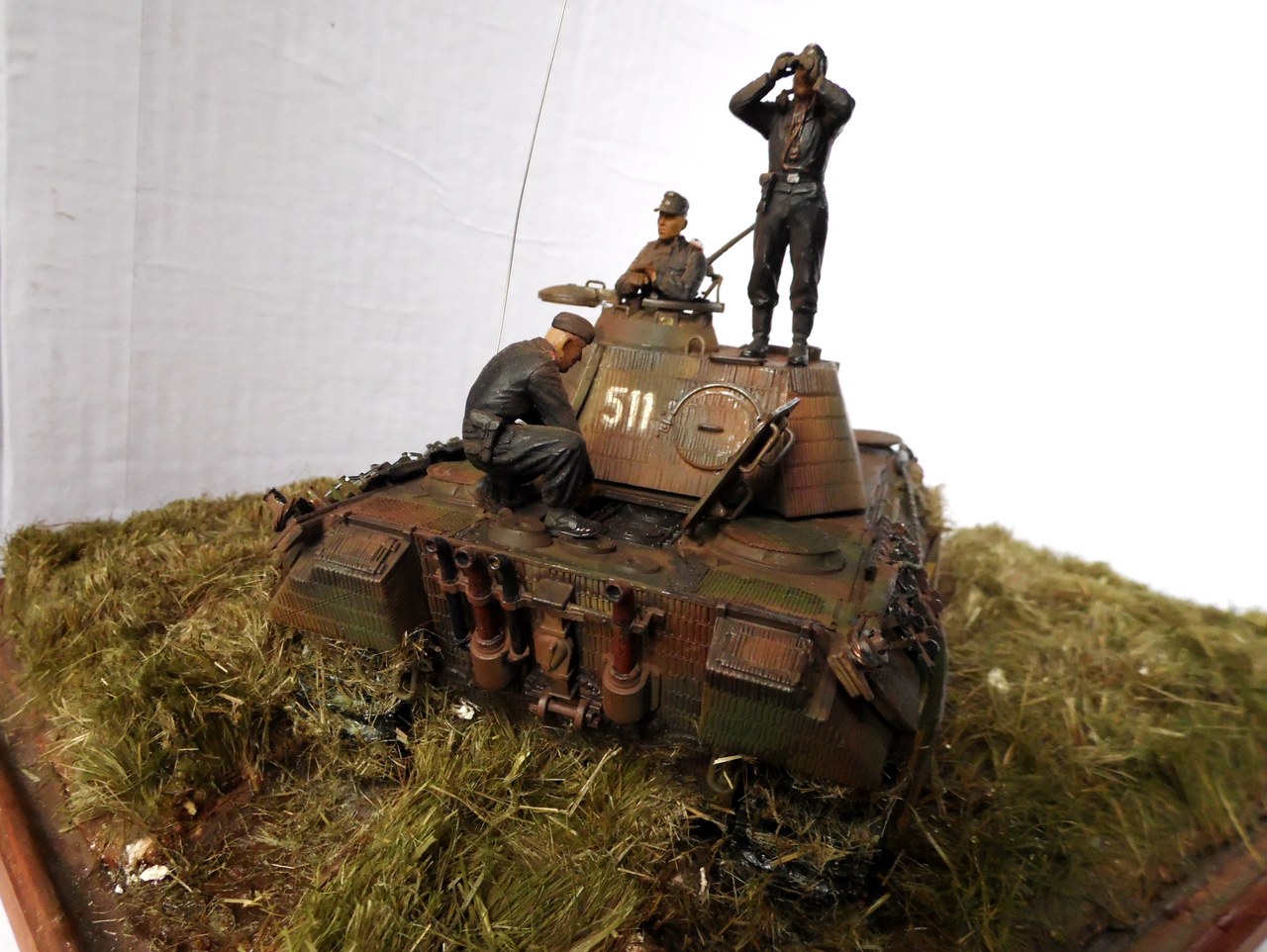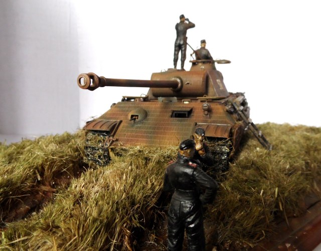 ...Как следует из этого "лирического отступления,это "Пантера-А" стоящая на дороге и её экипаж возле и составляют сюжет диорамы.