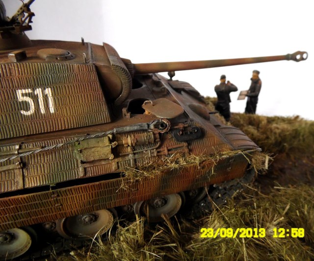 Гусеницы родной винил,замаскированный соломой и экранами,т.к.машина новая и почти не была в бою.Смотровые приборы из СД-дисков.Сетки на МТО-травление "Voyagermodel".