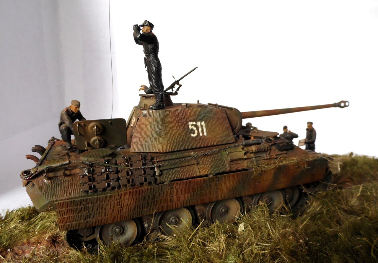 По кошке промолчу не знаток. Фигурки на мой взгляд удались. Жалко нет фото поближе. Очень понравилась задумка с погонами из фольги, возьму на вооружение. Особо понравились гусеницы с травой на них, сразу понятно что танк приехал сам а не инопланетяне поставили. Единственный минус это выбранный фон для съёмки.