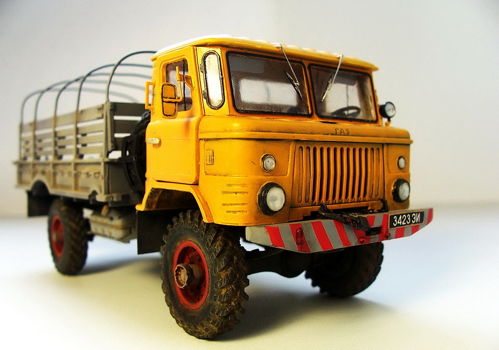 Да, хороший Газик получился, особенно впечатлили дворники. Окраска необычная, хотя встречал подобные яркие цвета на ГАЗ-66.