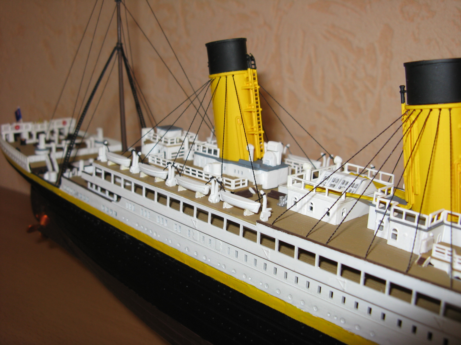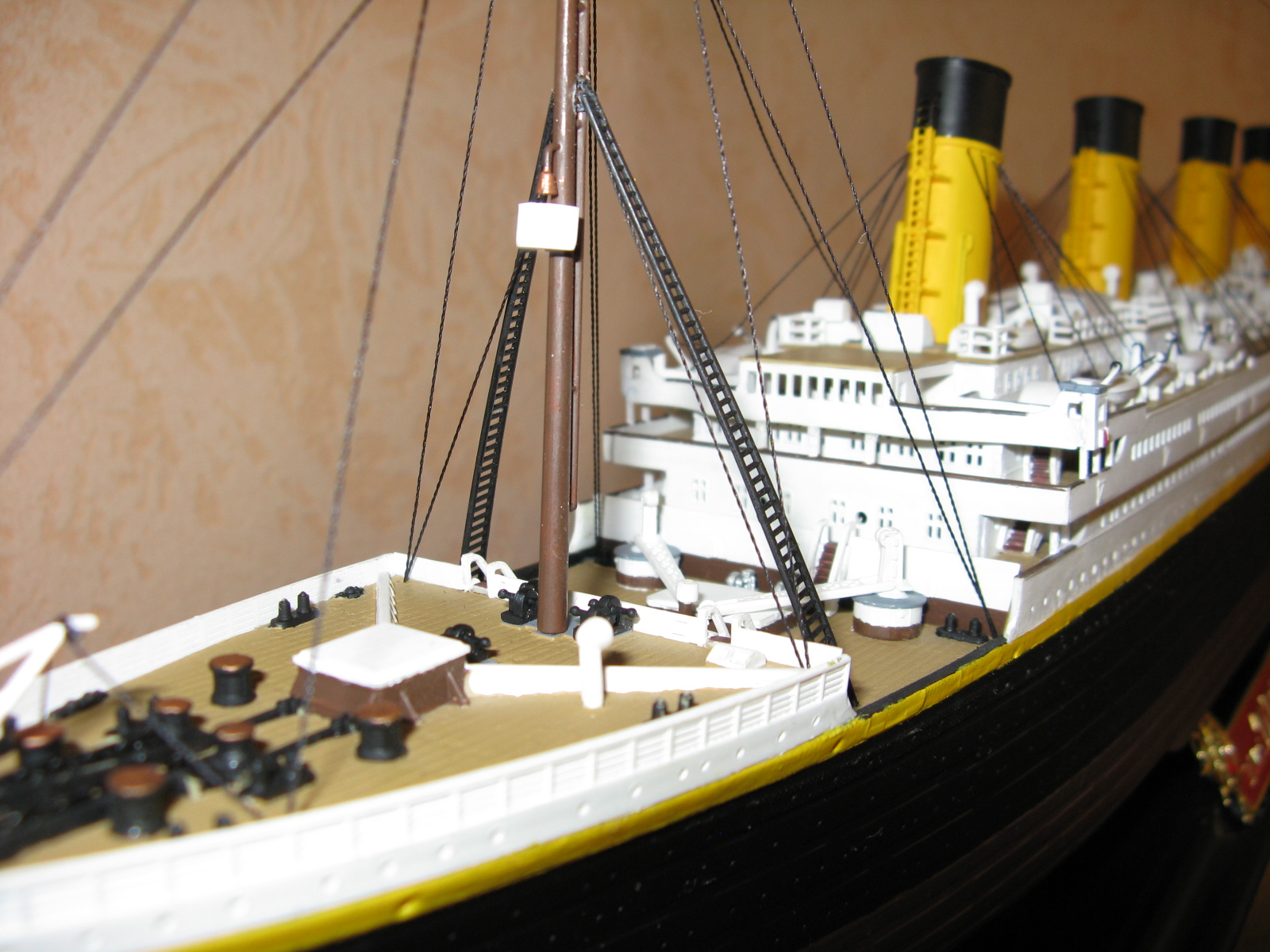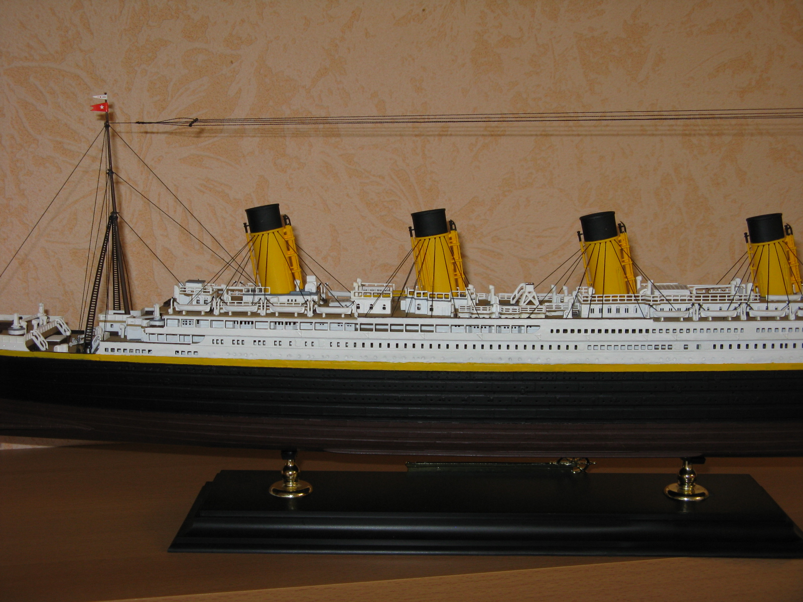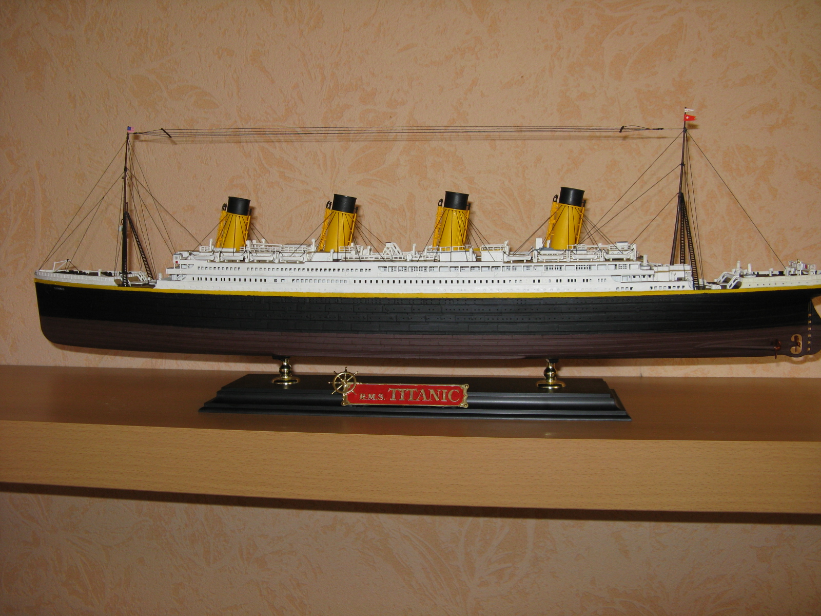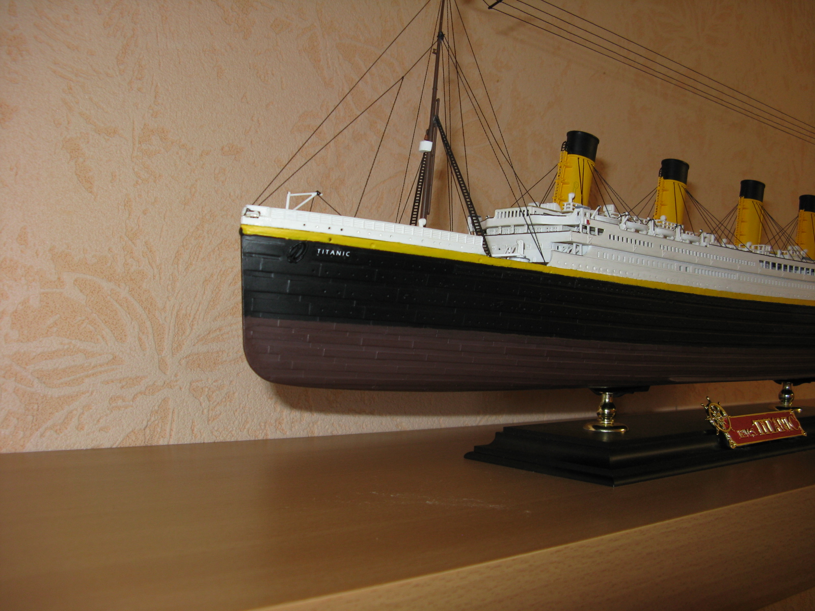 Хочу представить на ваш суд мою очередную работу (вторую) знаменитый Титаник.Данный набор я приобрел проездом в Москве,т.к у себя на родине такой не часто можно встретить,да еще в таком масштабе.На сборку модели ушло около 2-х месяцев,по модели могу сказать,что собиралась довольно не сложно,были проблемы со стыками,и прочими мелочами,но благо все устранил.Красил кистями и эмалями от Tamiya,собранную модель покрыл полуматовым лаком.Да,хочу сказать,что я специально не красил окна ни кистью,ни маркером,т.к был убежден,что кроме фототравления другие способы просто испортят внешний вид.В процессе сборки взял для себя за основу прототип Титаника собранным Питером Дэвисом Гарнером,если кому интересно можно посмотреть тут:http://titanic-model.com/models/exhibition/composite/ и тут http://www.титаник2012.рф/gallery/-modelz-titanika-pitera-devisa-garnera.html.