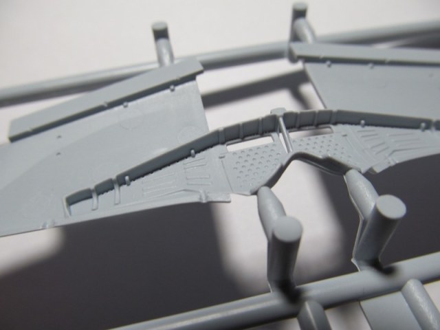 ...Все бы в этом пластике было хорошо, НО... задние кромки - толстючие, просто пипец, простите за выражение. Причем в силу особенностей членения их особо и не сточишь. На литниках в глаза не бросается, а вот если собрать, хотя бы "насухо" - ...