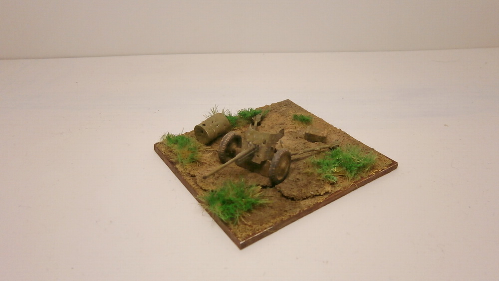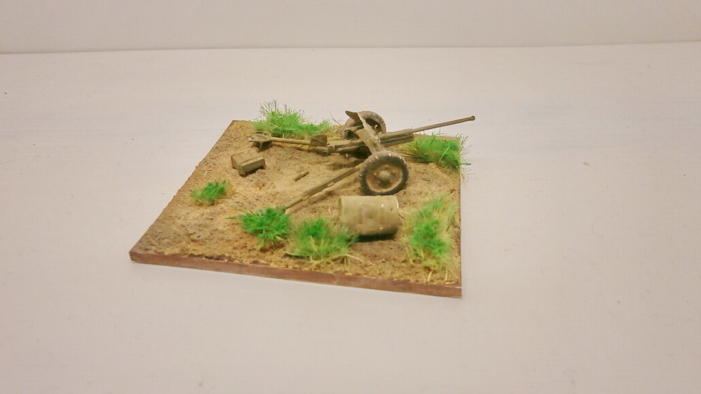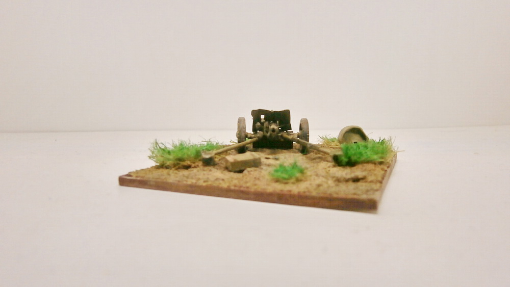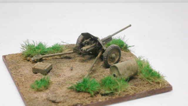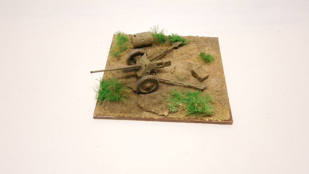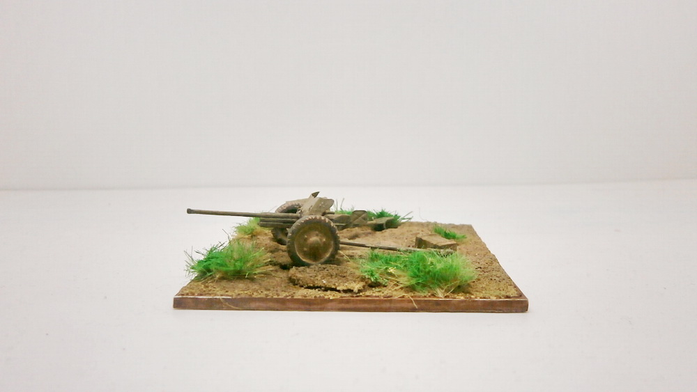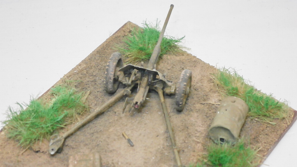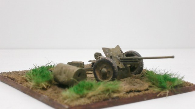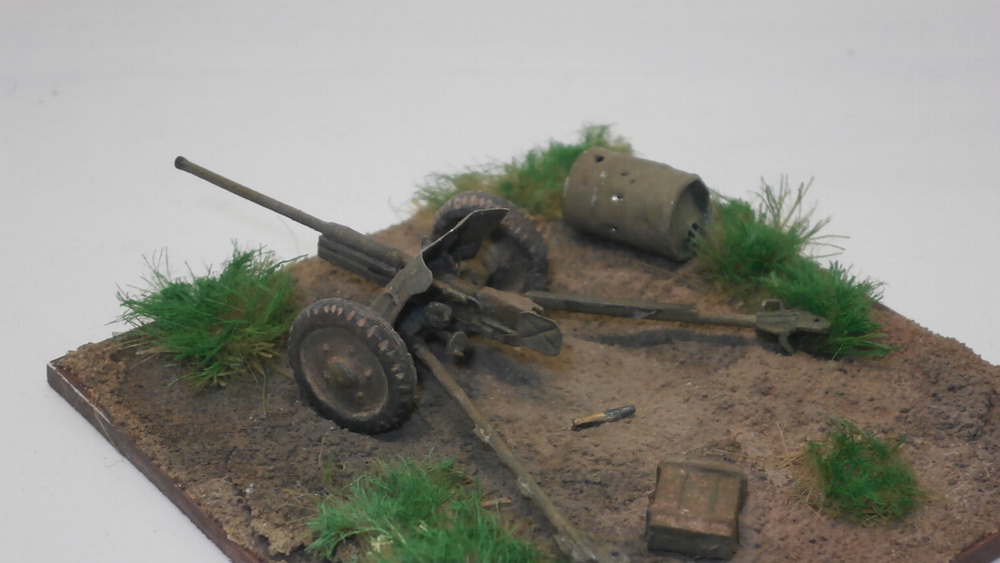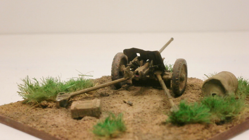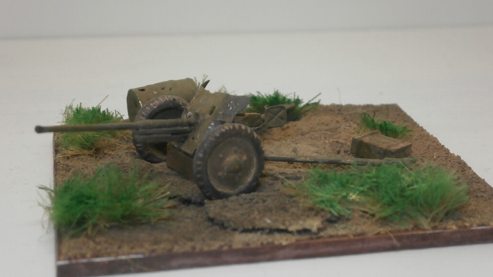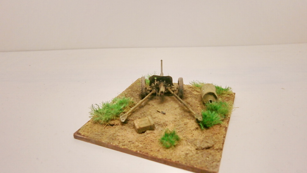 М-42 (Индекс ГАУ — 52-П-243С) — советское полуавтоматическое противотанковое орудие калибра 45 мм. Полное официальное название орудия — 45-мм противотанковая пушка обр. 1942 года (М-42). Оно использовалось с 1942 года до конца Великой Отечественной войны, но в связи с недостаточной бронепробиваемостью было частично заменено в производстве в 1943 году на более мощную пушку ЗИС-2 калибра 57 мм. Окончательно пушка М-42 была снята с производства в 1945 году; за 1942-45 гг. промышленность СССР изготовила 10843 таких орудий. Изготовлена из тянутого литника и жести., окрашена тамиевской краской, лак, немного сколов, немного тонировки, ну и так , чтобы не потерялась сделал небольшую подставку, участвовала в рамках ГБ. Проба в таком масштабе.