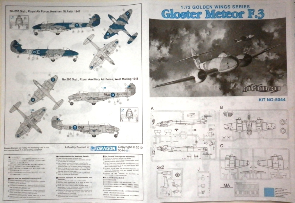 До недавних пор "Метеоры" выпускались только от FROG(NOVO) -Mk 4, Airfix - MkIII, Matchbox - Mr11-14. Не так давно появилась целая серия чешского производства. Следующий шаг сделали китайцы, выпустив единственную повоевавшую модификацию британского реактивного самолёта.