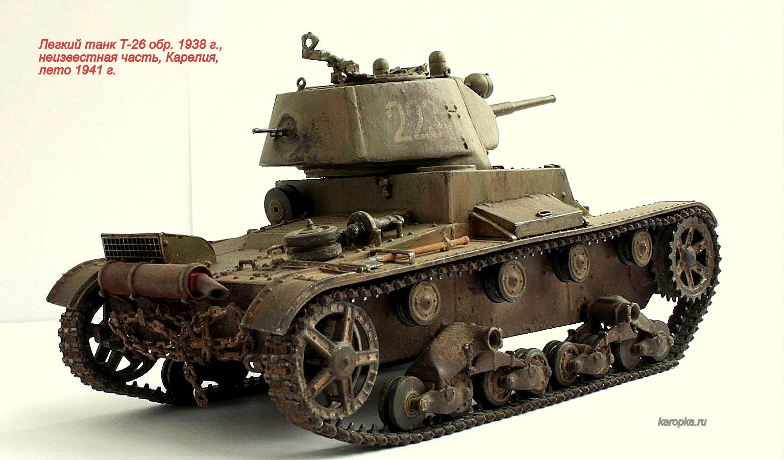 Красивый танк, жалко что на фото цвет гуляет. У самого лежит от хоббибоса, не начинаю пока не появится обещанная вами статья по Т-26.