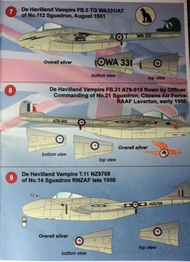 Представленный набор на 9 вариантов DH-100: 7 британских, одного австралийского и одного новозеландского.