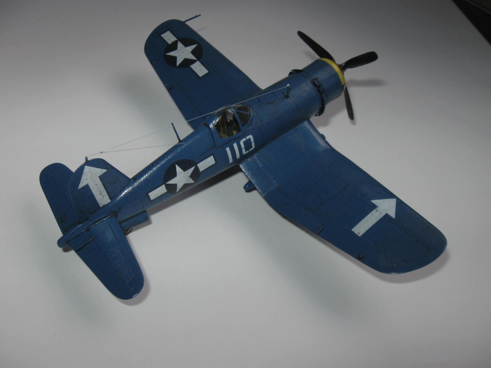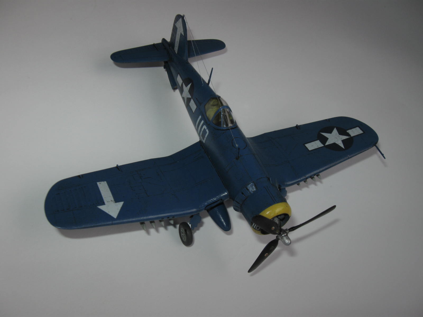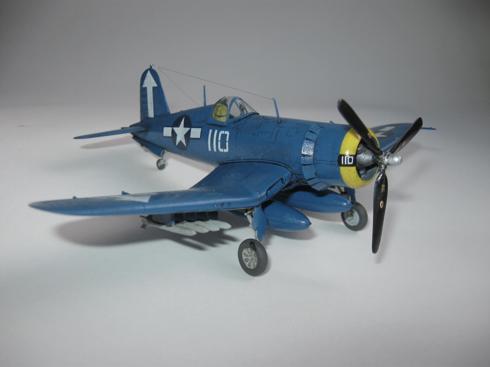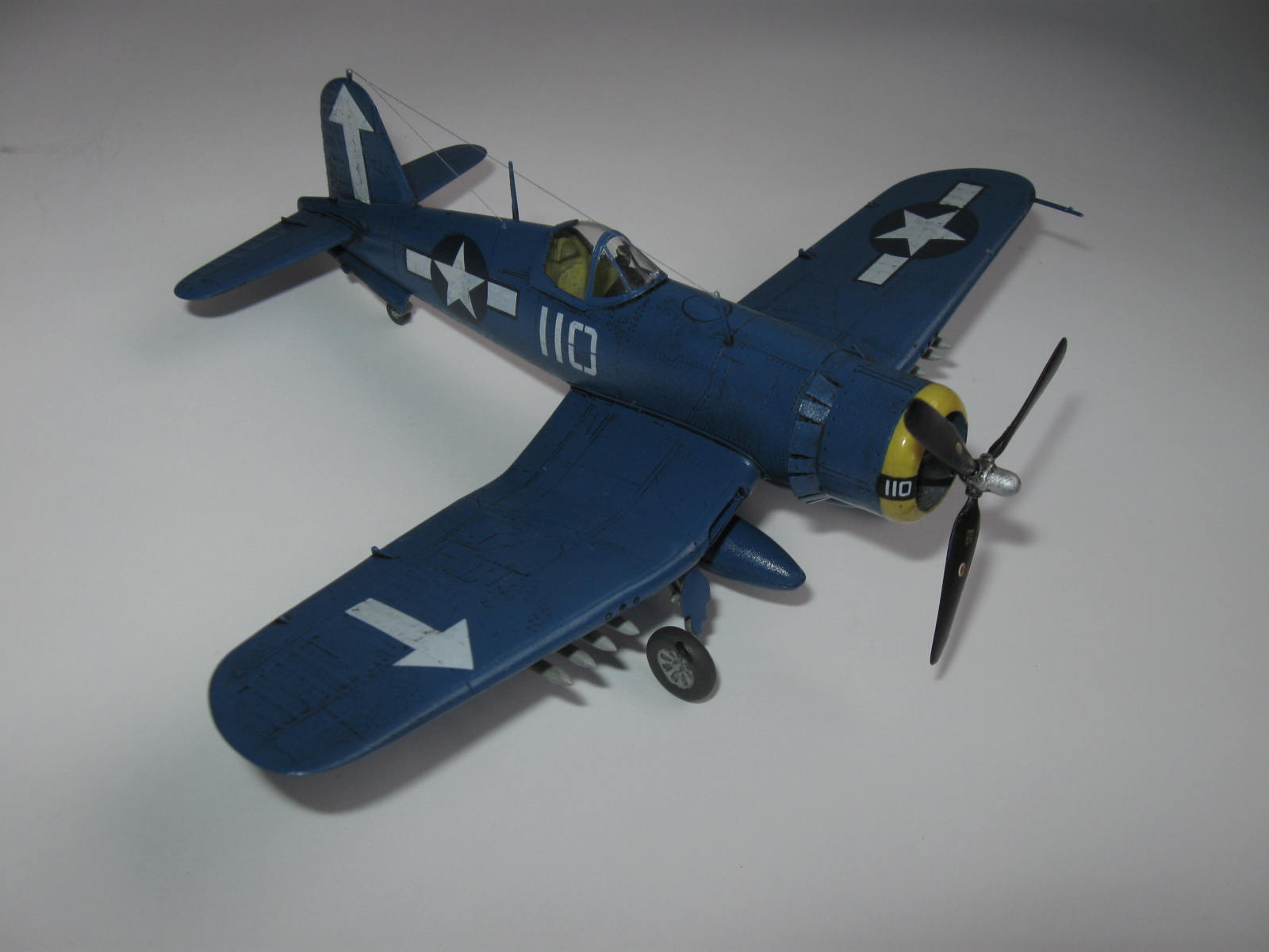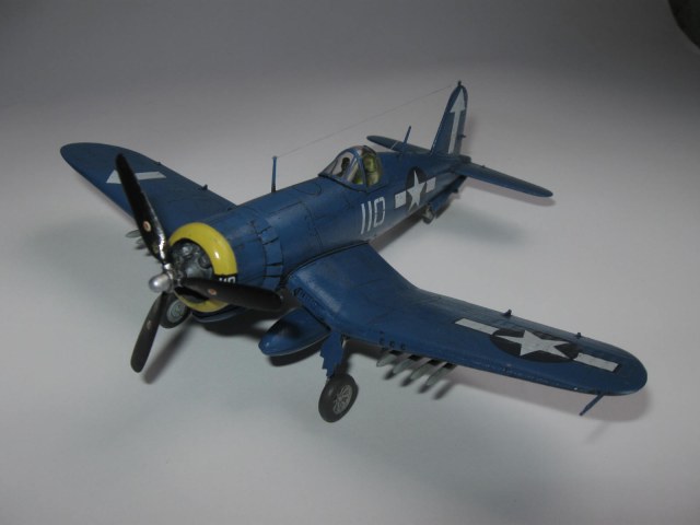 К соседней работе автора из-за фонаря было столько претензий. Странно, что в этой работе никого не смутила ни ВМГ, ни подвеска, ни шасси, ни фонарь, ни цвет планера... А ведь Корсары (в отличие от очень удачного МиГа) - это одни из худших моделей ХоббиБосса.