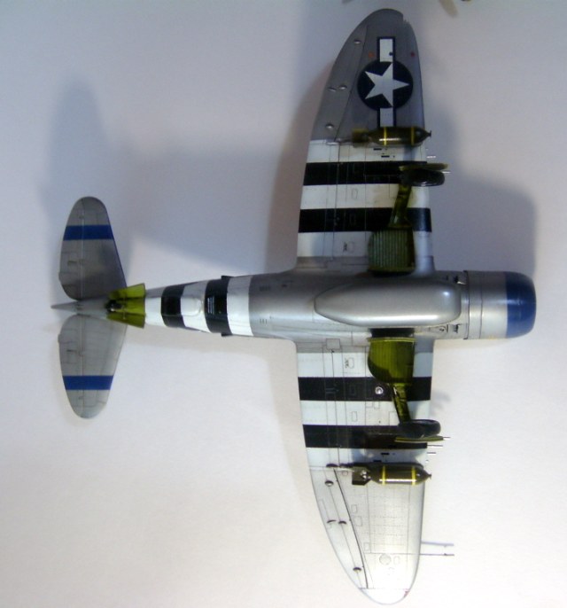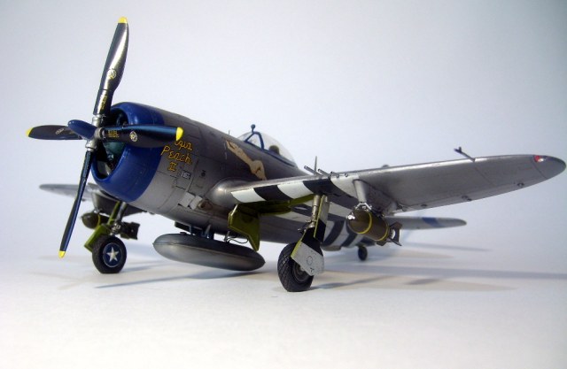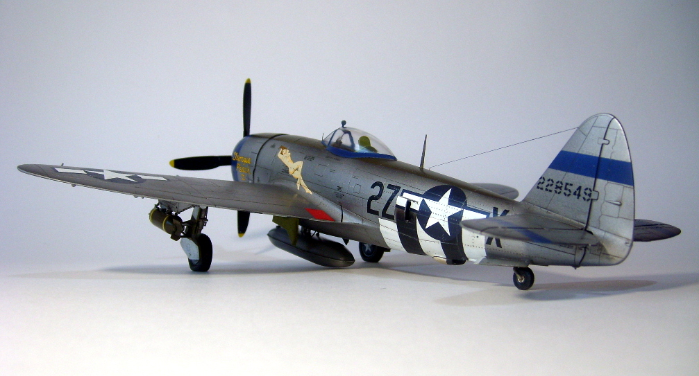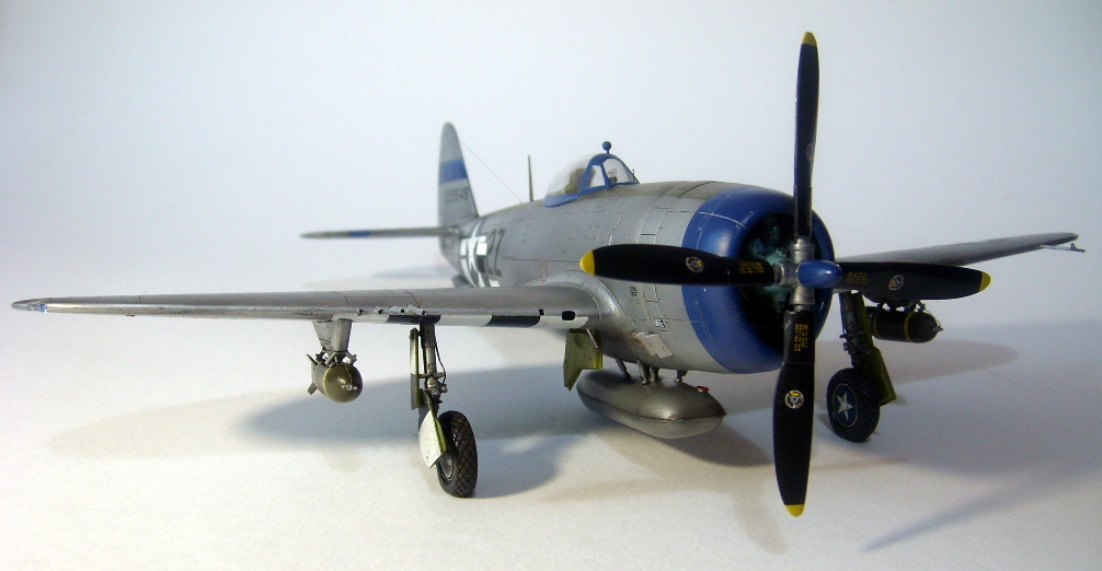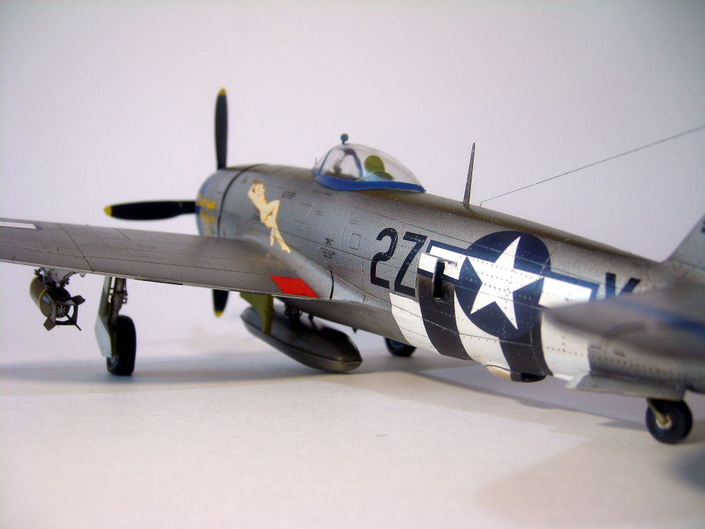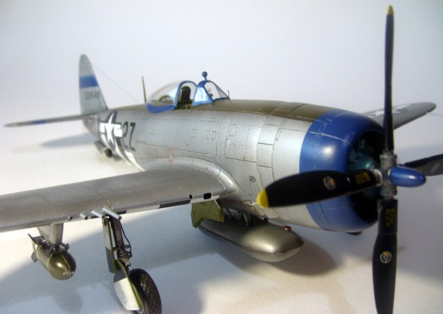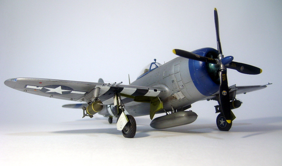 Приветствую всех!Представляю модель Р-47D от Хасегавы.При сборке использовался афтемаркет в виде интерьерного фототравления от Eduard,двигатель и кресло пилота Quick Boost,колеса СМК,декаль Eagle Strike.Из доработок:двигатель,ниши шасси,топливный бак,кабина пилота,стабилизаторы бомб,модель проклепана ревитером с разным шагом.Красил тамиевским акрилом(полосы вторжения,антибликовая полоса,капот,фонарь,киль и рули),затем маски из тамиевского скотча и покрытие черной базой Alclad II,после просушки задувал металлик Alclad "Semi matt Aluminium" тонкими слоями в несколько заходов.Затем задул рулевые поверхности Alclad "Airframe Aluminium",предварительно замаскировав не нужное.Слой футуры с последующим обдекаливанием.Еще глянца и смывка масляными красками на миговском растворителями.Финишный лак-полуматовая Тамия.Металликами Алклад пользовался впервые-результатом очень доволен! Приятного просмотра!