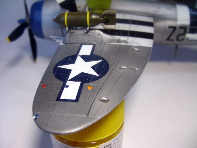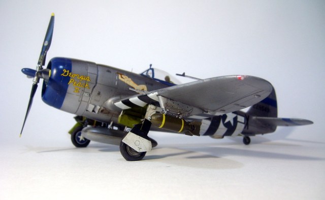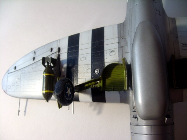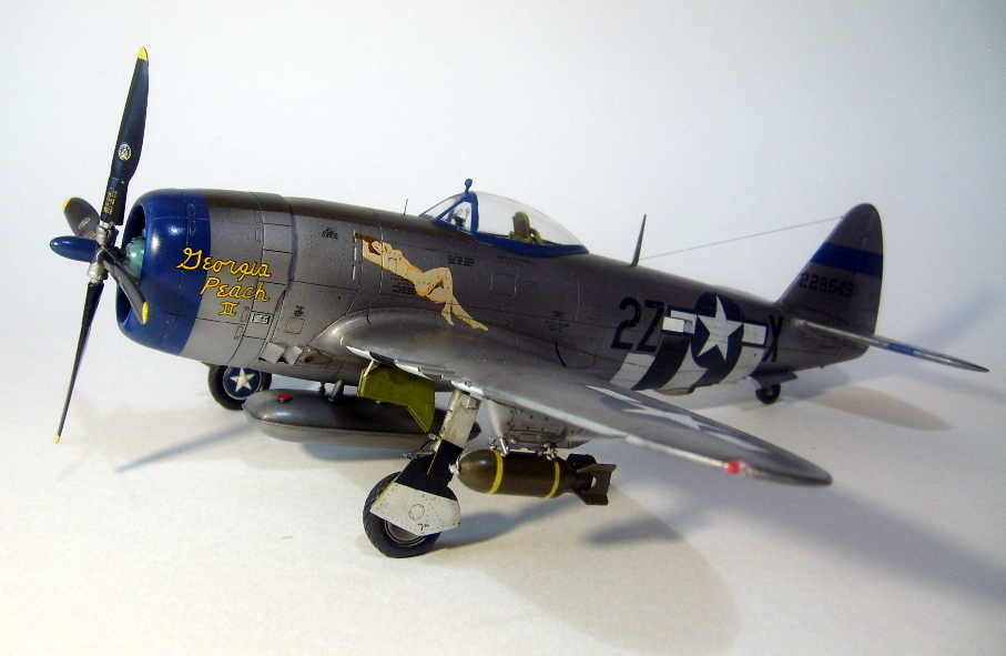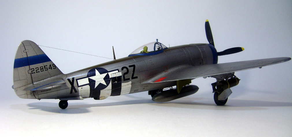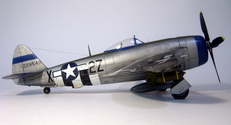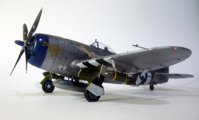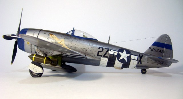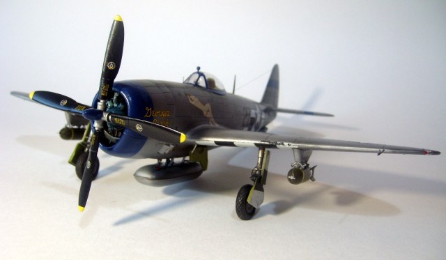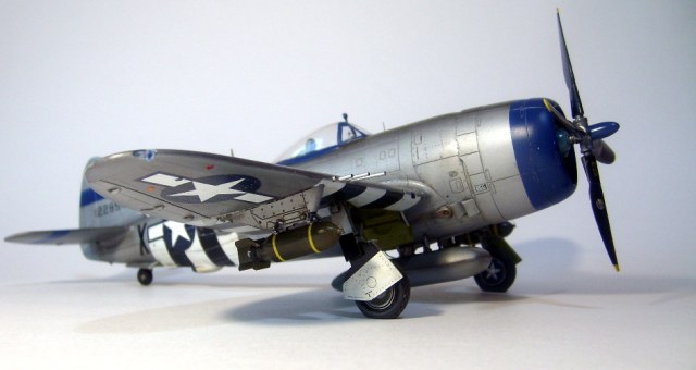 Приветствую всех!Представляю модель Р-47D от Хасегавы.При сборке использовался афтемаркет в виде интерьерного фототравления от Eduard,двигатель и кресло пилота Quick Boost,колеса СМК,декаль Eagle Strike.Из доработок:двигатель,ниши шасси,топливный бак,кабина пилота,стабилизаторы бомб,модель проклепана ревитером с разным шагом.Красил тамиевским акрилом(полосы вторжения,антибликовая полоса,капот,фонарь,киль и рули),затем маски из тамиевского скотча и покрытие черной базой Alclad II,после просушки задувал металлик Alclad "Semi matt Aluminium" тонкими слоями в несколько заходов.Затем задул рулевые поверхности Alclad "Airframe Aluminium",предварительно замаскировав не нужное.Слой футуры с последующим обдекаливанием.Еще глянца и смывка масляными красками на миговском растворителями.Финишный лак-полуматовая Тамия.Металликами Алклад пользовался впервые-результатом очень доволен! Приятного просмотра!
