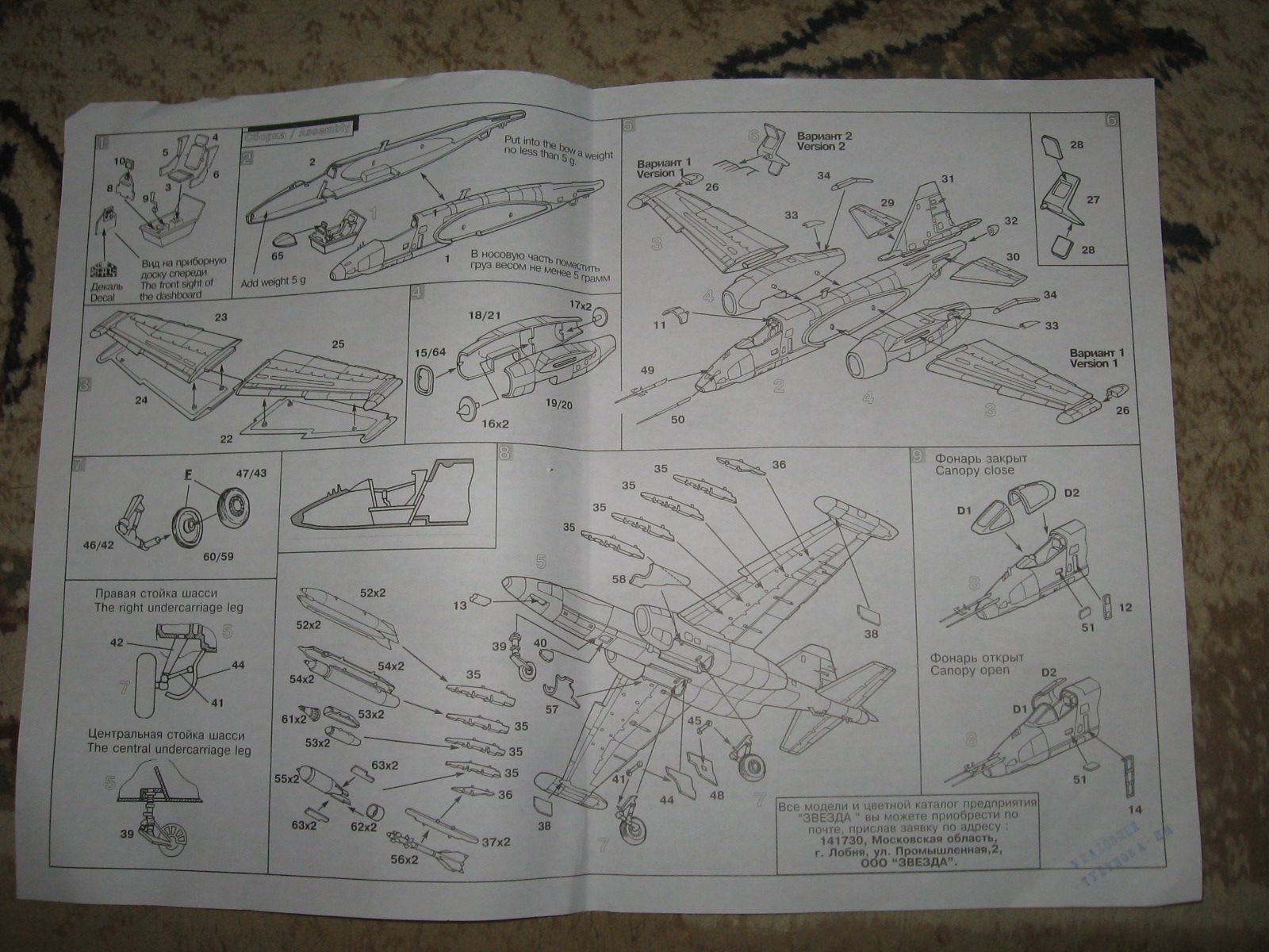теперь немного о минусах: детали прикреплены к литникам очень толстым пластикам, и чтоб их отрезать нужно приложить приличные усилия и при этом можно некоторые можно просто сломать мелкие детали, в инструкции нет схемы окраски интерьера кабины пилота, а это как не странно начало сборки модели, без этого сборку не начнешь.