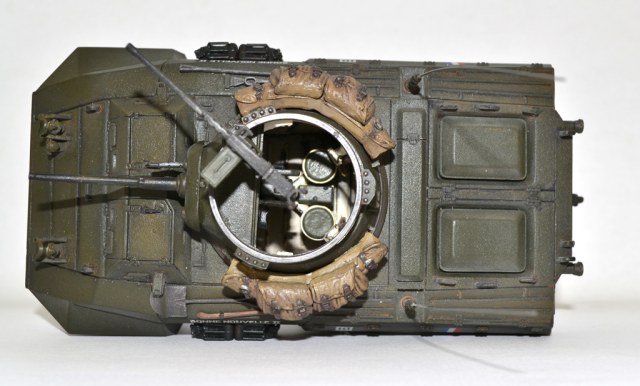Как было сказано выше, модель нуждается в доработках ввиду её изначальной дубовости. Простой искоробкой тут не отделаться. Окраска какая-то простенькая, да ещё и блеск везде ненужный, особенно на барахле, которое ещё и оттонировать нормально не мешало бы. Ствол орудия на дульном срезе какой-то неровный, отпечаток пальца по левому борту. Аккуратней надо. Пока Песок. Удачи в дальнейших работах.