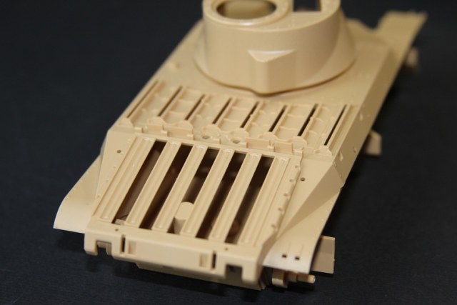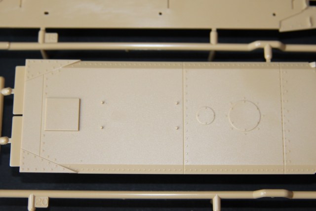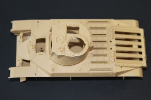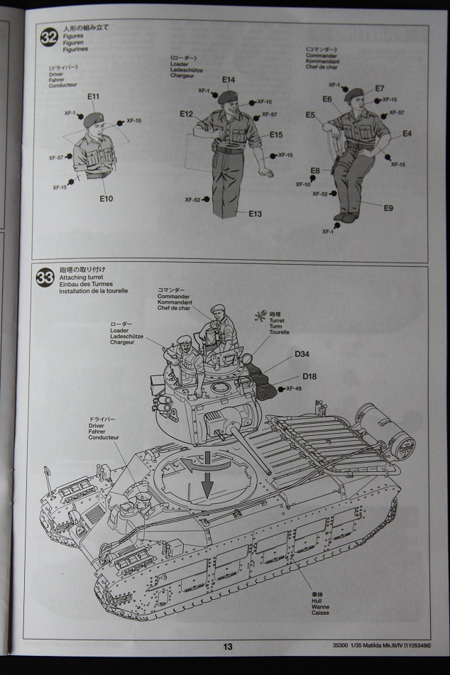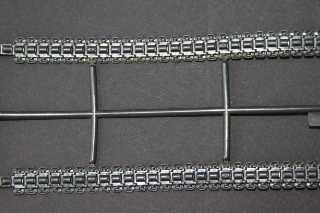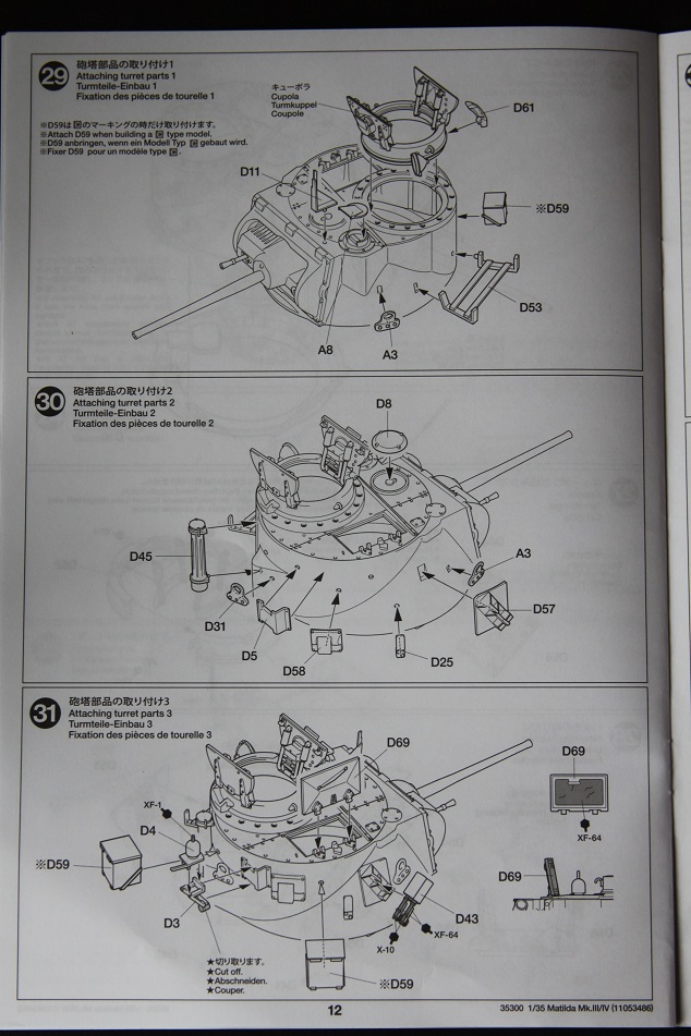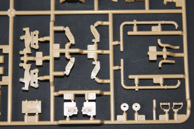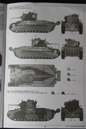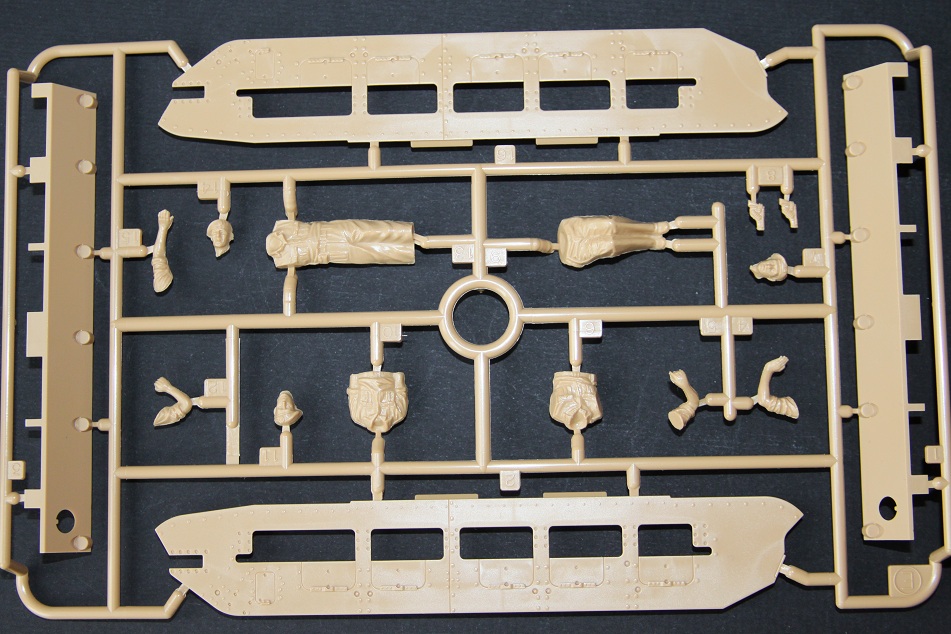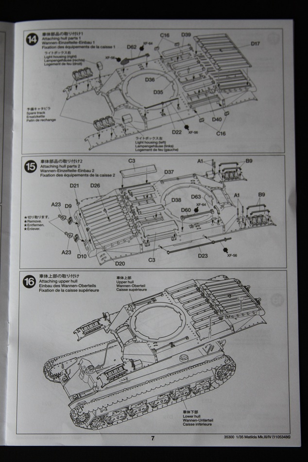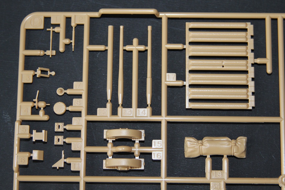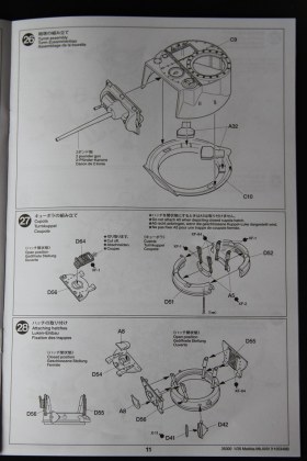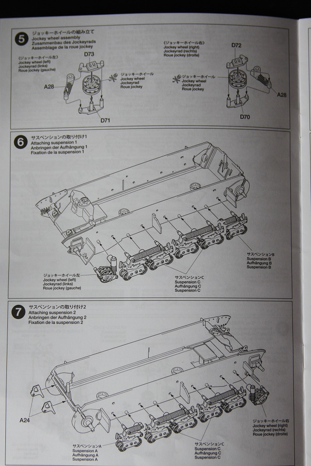 В коробке лежат пять литников песочного цвета, виниловые траки, пакет с резинками для подвижных деталей, отрезок нити имитирующей трос, декаль, корпус танка идёт отдельной деталью. Набор очень хорошего качества литьё чёткое без утяжин и облоя а толкатели расположены на внутренних сторонах. В наборе имеется экипаж из трёх человек , три орудийных ствола , пластиковые траки собирающиеся из нескольких частей, декаль на три варианта под три камуфляжа. Инструкция выполнена в виде книжки на 15 страниц, где подробно показана сборка танка и схемы камуфляжей. Набор хорошего качества, отличный пластик но, как и вся TAMIYA довольно простоватый и будет не лишним взять набор травления и наборные траки.