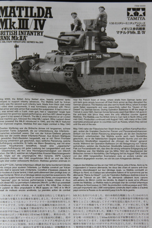 Представляю вашему внимаю обзор танка Matilda MK III/IV от фирмы TAMIYA номер по каталогу 35300.
