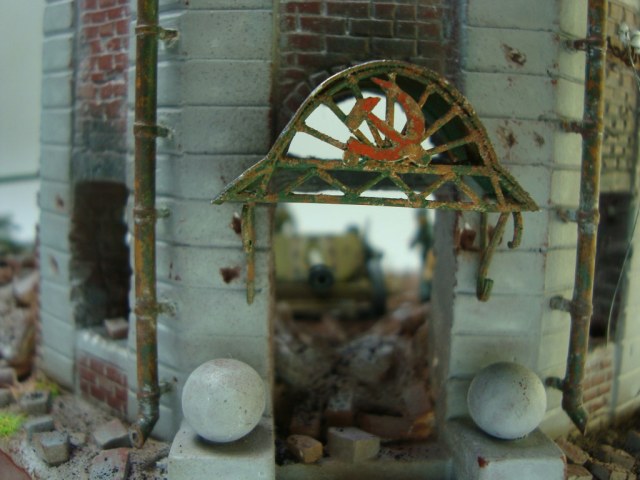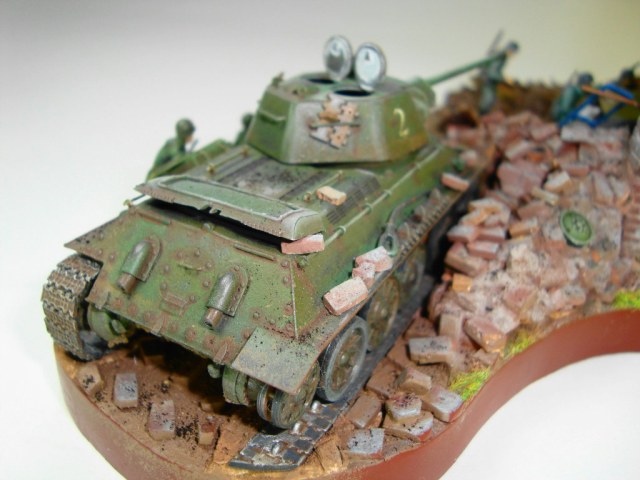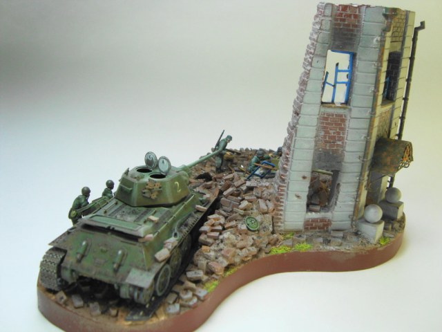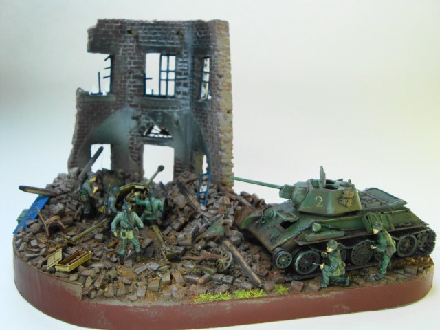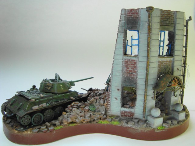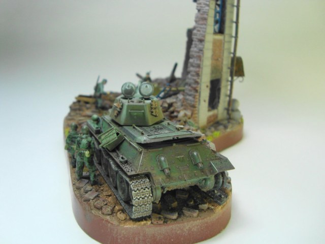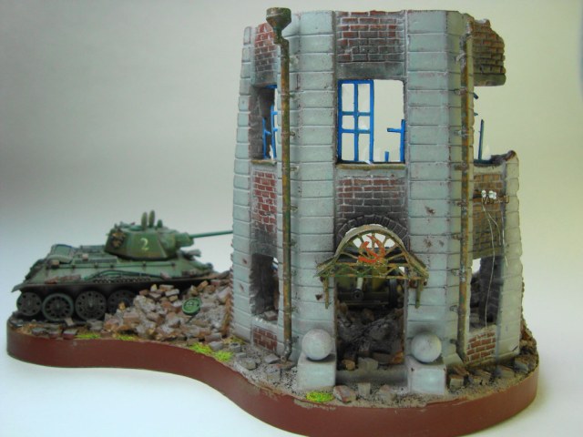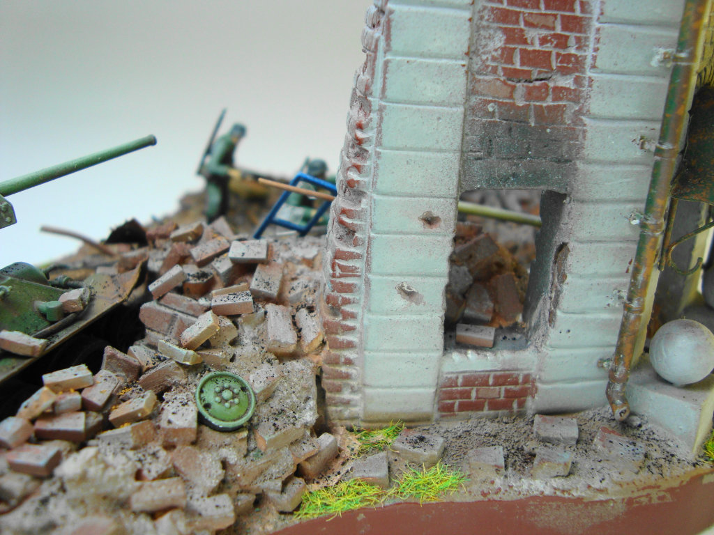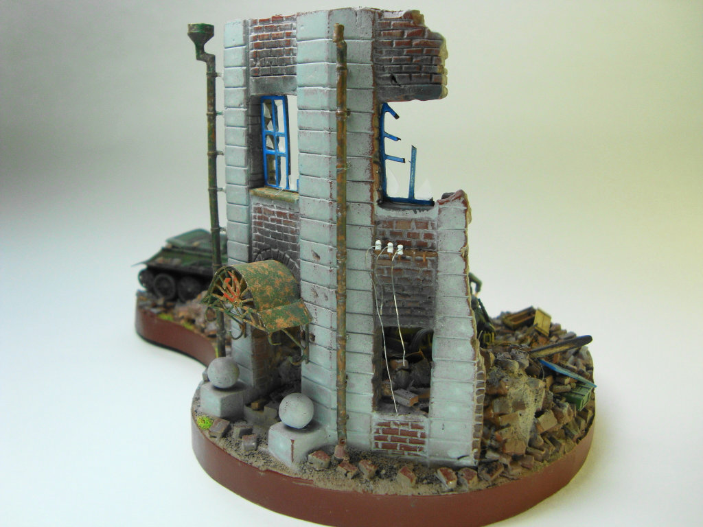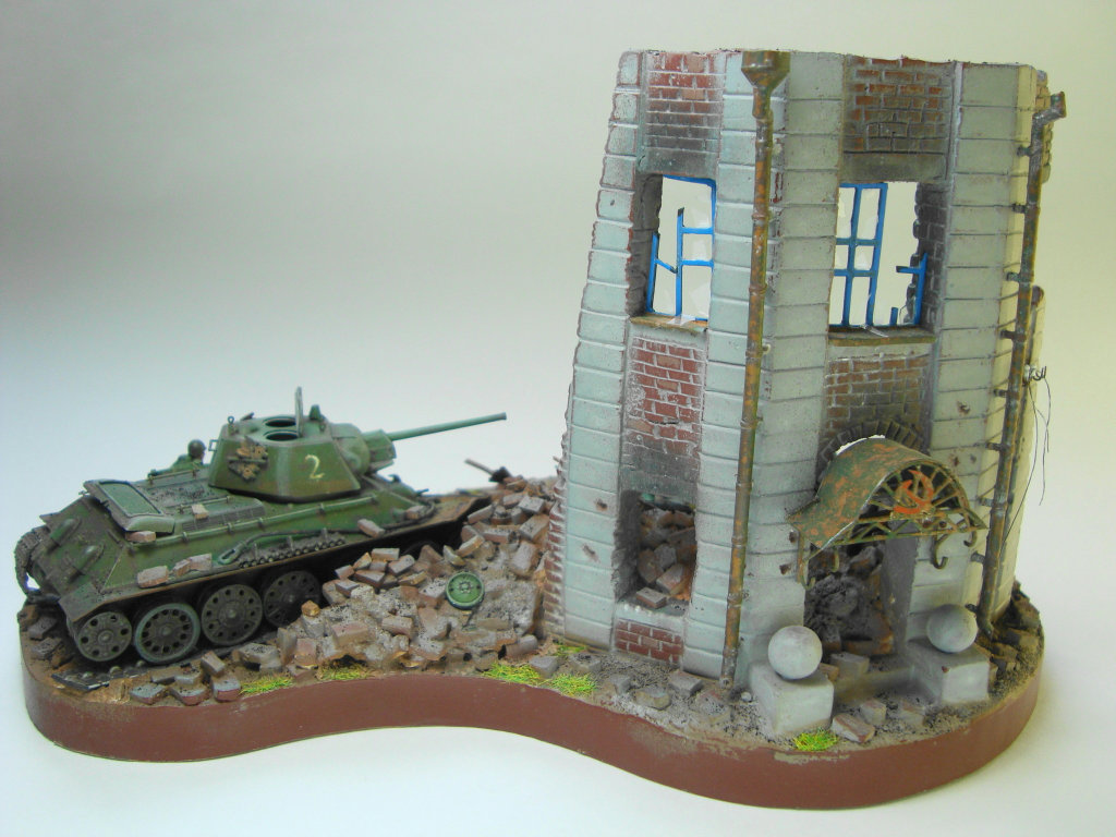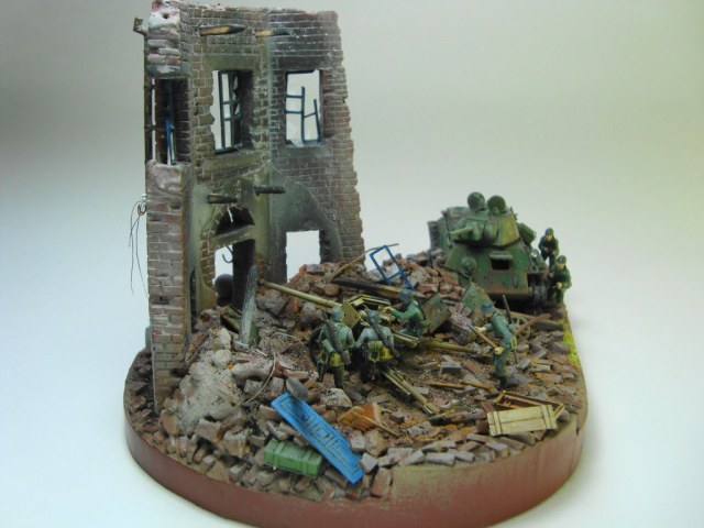 Масштабно! В 72-ом масштабе достойно сделано! Удивил кирпич под решеткой танка, видимо запихнули, чтобы двигатель не перегревался ))). Руины интересные, но смущают в них какие-то мелочи. Интересно было бы узнать как вы их задумывали и реализовывали.