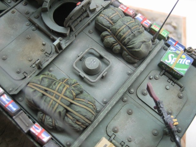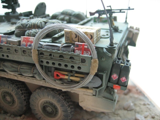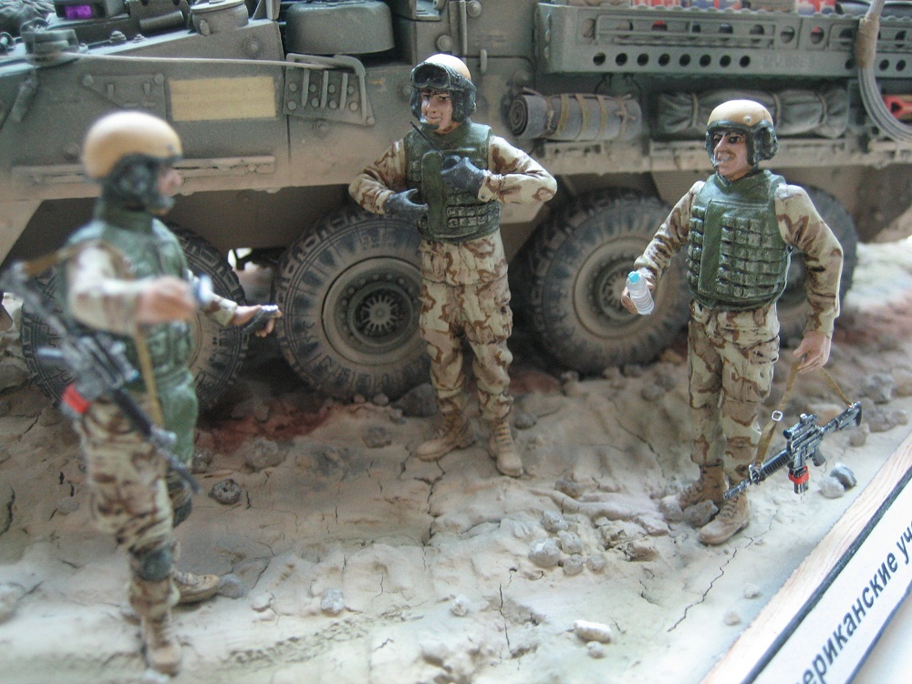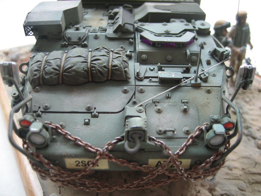 Понравилось запыление. Не понравилась гигантская антенна и М240 на корме – приклад и ручки должны быть из черного пластика, отсутствует цевье значит это морпеховский М240G, что он делает в «Страйкербригаде»? Цвета формы на фигурках далек от оригинала.
