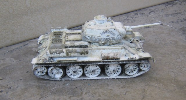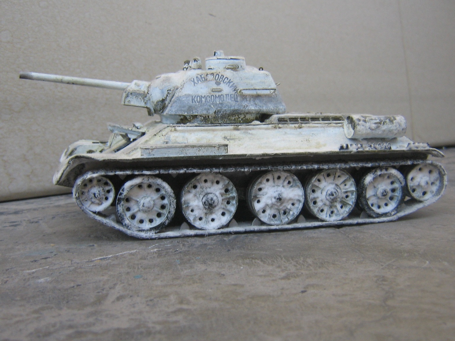 Да, снег из соды, закреплен на ПВА. В общем там предыстория такая) Я с большим уважением отношусь к тому нелегкому времени войны. Делаю модели тех времен "боевыми", видавшими видов и всяески загрязненными. Но в этот раз я хотел я сделать танк, таким каким танкисты получали с его с завода - с запахом свежей краски, чистым, почти глянцевым) Но вышло так, что краски было было мало и сразу весть танк покрасить не удалось, потом взял точно такую от Звезды, но оттенок у неё был другой... Очень расстроился... Но потом решил исправить ситуацию сделав зимний камуфляж, не пропадать же модели) А на гусли сразу денег не хватило... Но думаю переделаю.