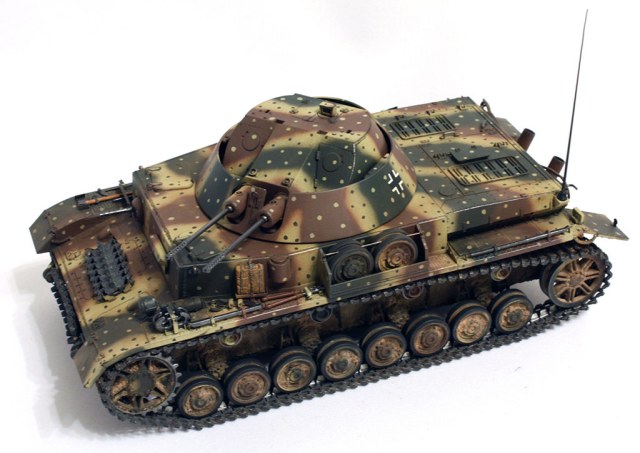 Подумав, я решил изобразить ту, которая мне показалась бы логичной, и которую можно построить из данного набора. Я посчитал, что это Pz.Kpfw.IVAusf.Jсредних или ранних серий.