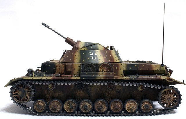 ИМХО ты как всегда поскромничал, модель шедевральная получилась. Ну если даже не шедевр, то очень приближённая к нему. Твой фирменный почерк - максимально учтённая матчасть и пристальное внимание к мелочам. Вкупе с аккуратной покраской и тонировкой это даёт потрясающий результат. Насколько я помню, это твоё первый опыт в нанесении засадного камуфляжа и на мой взгляд этот первый опыт вышел более чем удачно. В общем и целом блеск, просто блеск!