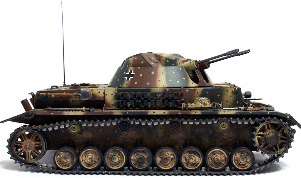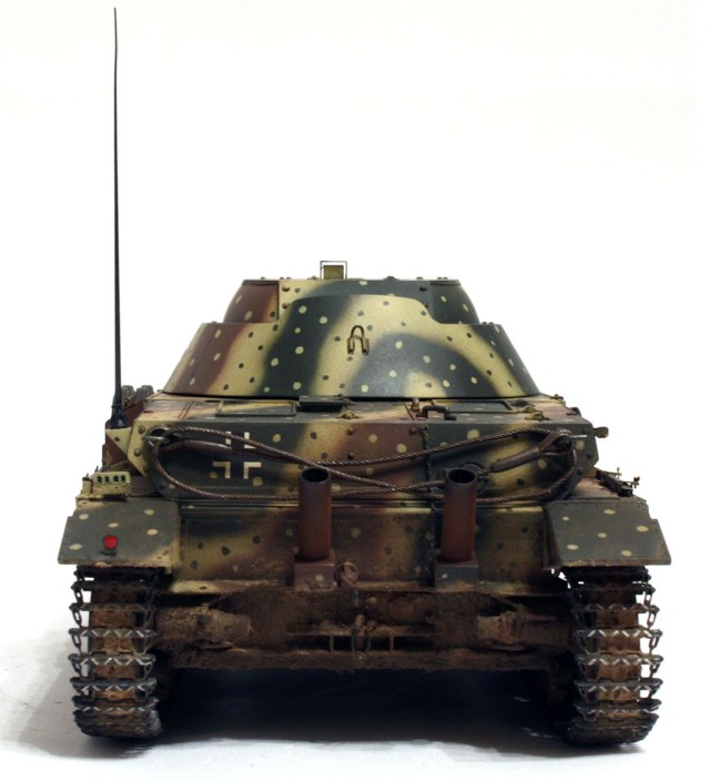 перекрашивать глушитель - это раз. Плюс у меня есть навязчивая идея, что эти вот глушители, характерные для поздних серий Pz.IV и машин на его базе - сами по себе весьма упрощённые и имеют низкое качество изготовления, ровно как и сам по себе танк Pz.Kpfw.IV Ausf.J - шаг назад в сравнении с Pz.kpfw.IV Ausf.H.