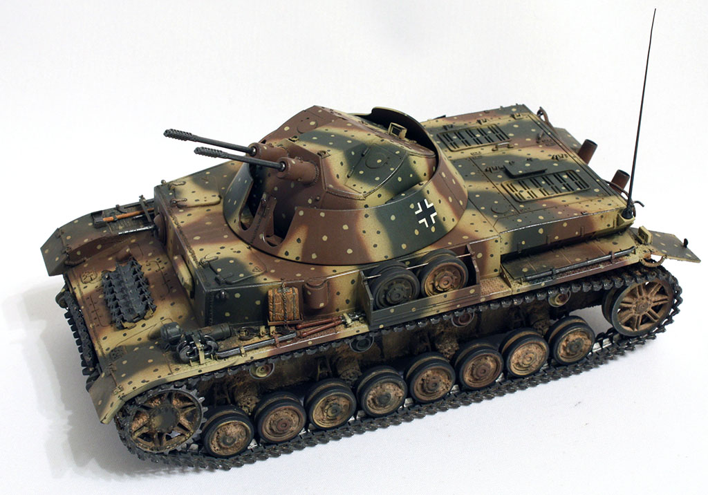 Тем не менее, да, именно так и было. На момент сборки модели модно было ориентироваться на фото Ausf.G и раннего "Штуга" с такой проводкой: