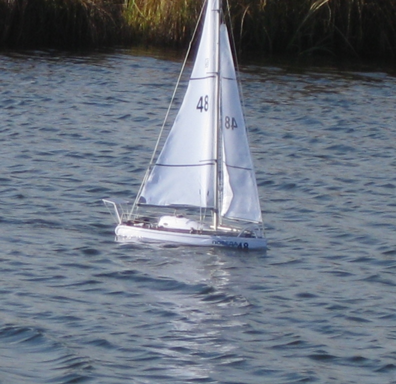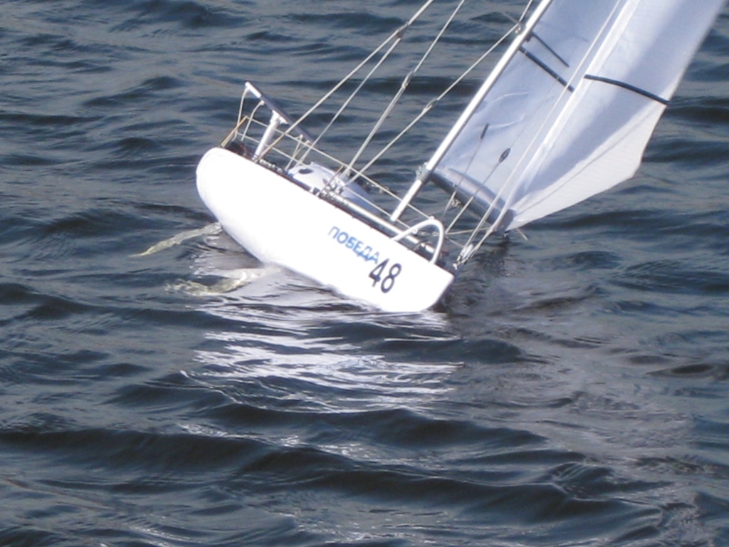 Яхта отлично ходит курсом галфвинд и курсом бейдевинд.Но при лавировке не хочет делать поворот оверштаг.Вчера из всех попыток получился только один оверштаг и сегодня тоже один оверштаг.Поэтому делаю поворот фордевинд.Так долго но яхта идёт против ветра!!!Курсом бакштаг и курсом фордевинд она идёт очень быстро.Яхту надо запускать когда есть хороший ветер.