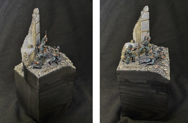 Миниатюры фирмы Звезда, подставка самодельная. Подставка - деревянный куб, здание сделано из обычной деревянной линейки, эпоксилина, строительной шпатлевки, земля - текстурная паста с кварцевым песком:)