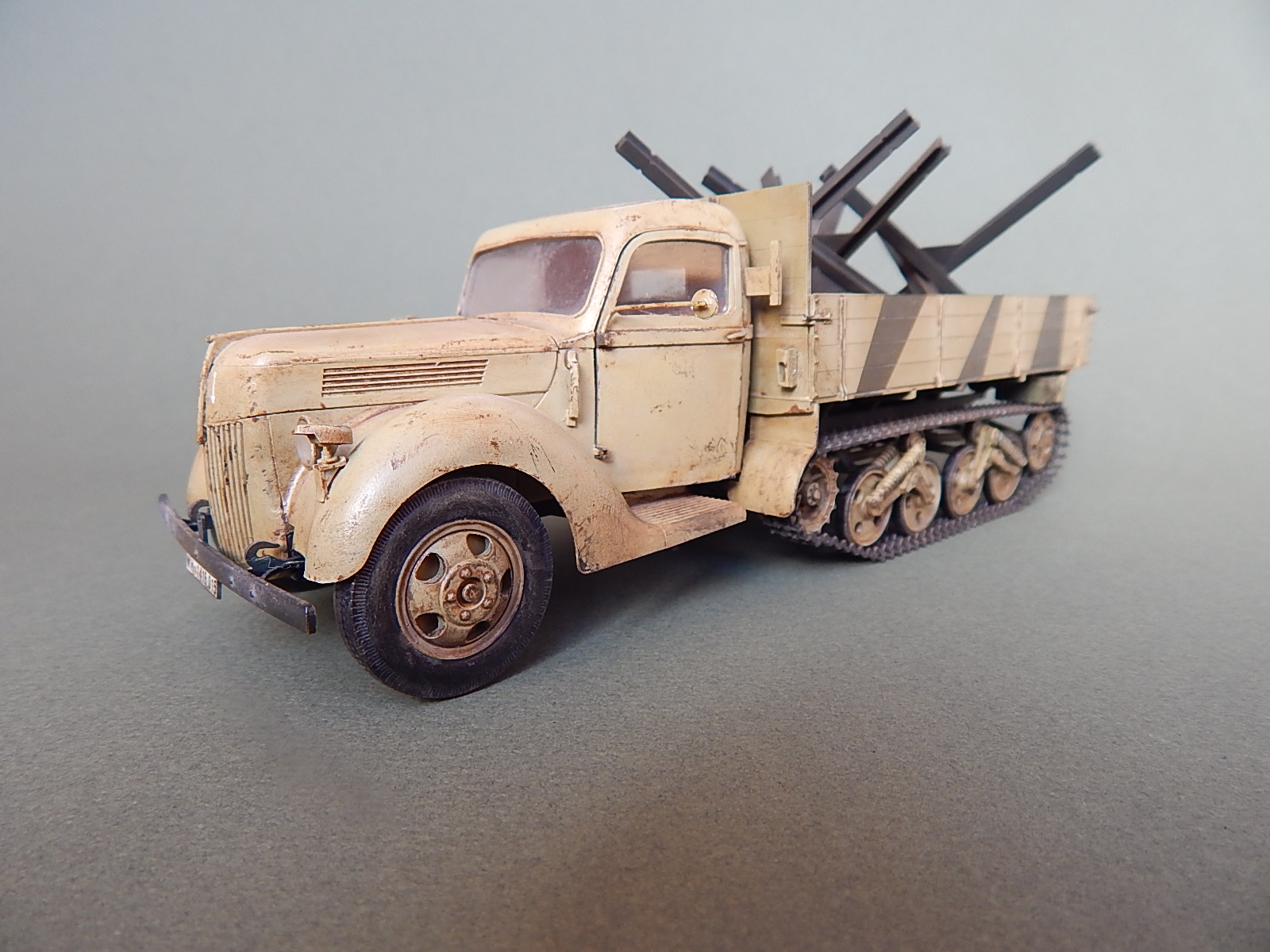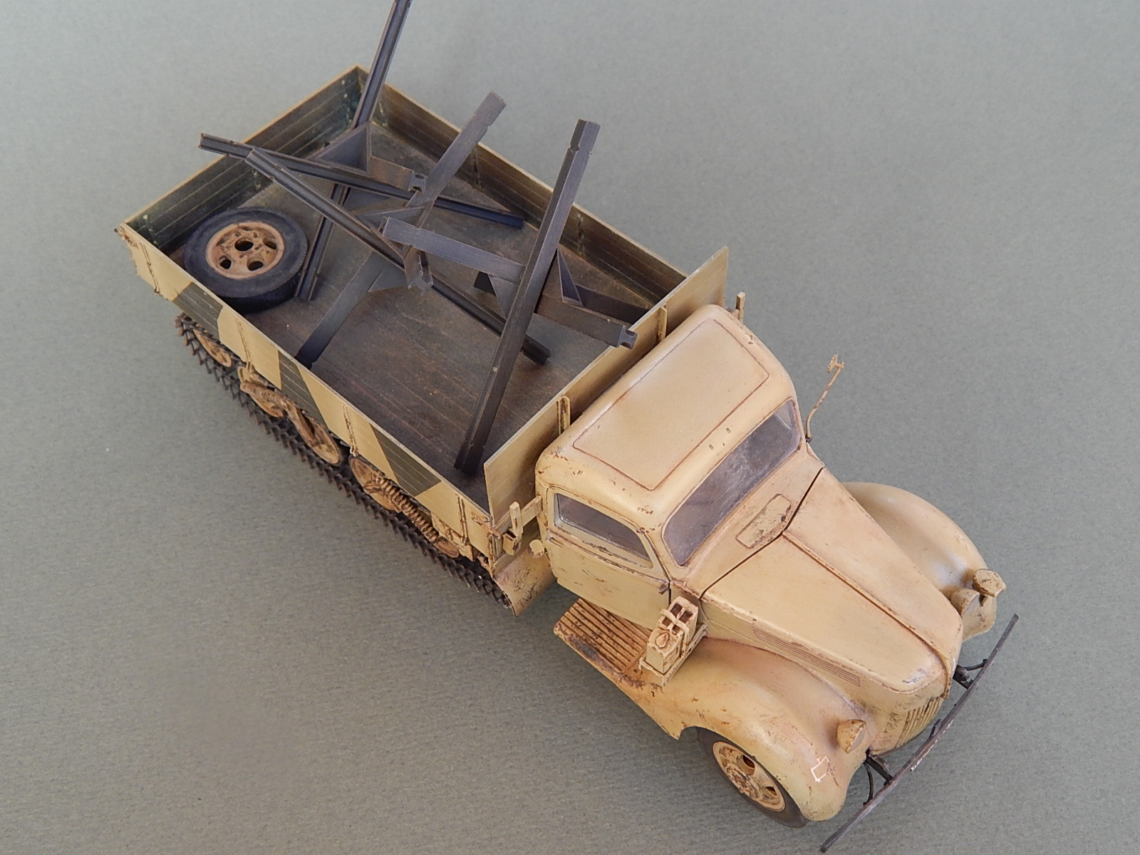 Модели понравились, очень неплохие фото. Очень понравился "обдир" грузовика. Вопрос по 5 фото, это кабина с крыльями или бампер стоят неровно? И ещё, те ящики, что над гусеницами, они не мешали движению?